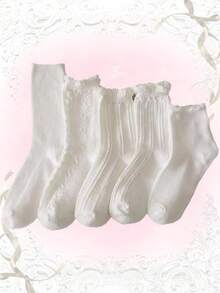 Kawaii 3pairs Women Random Version Solid Crew Socks