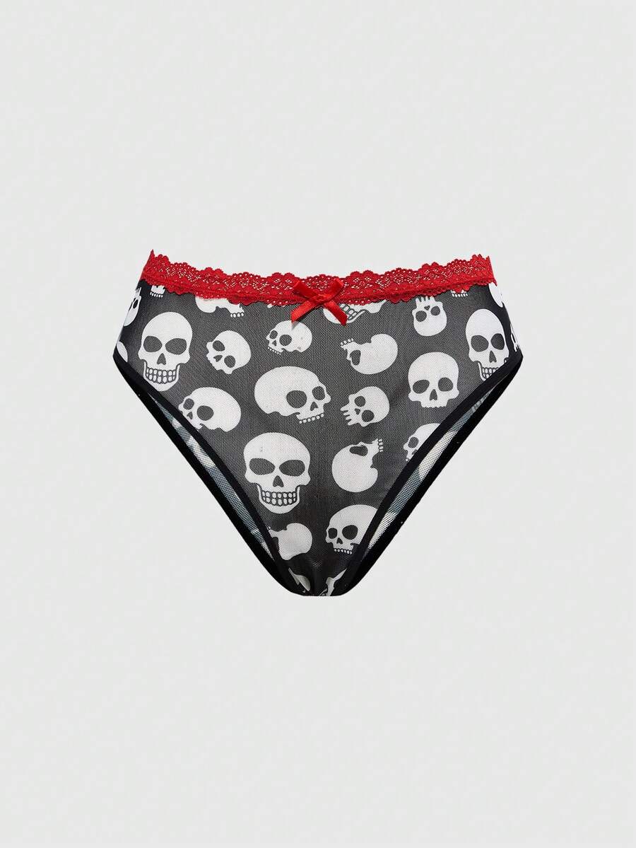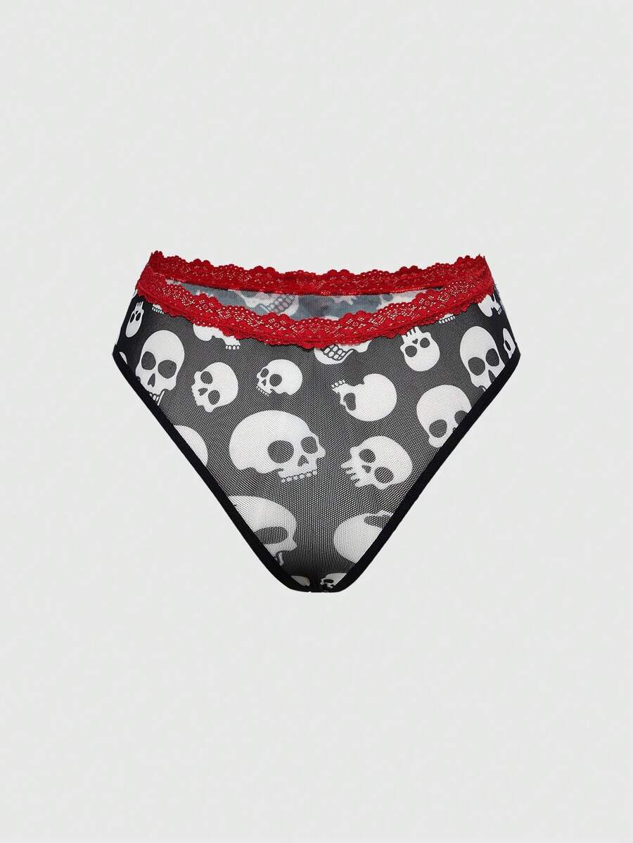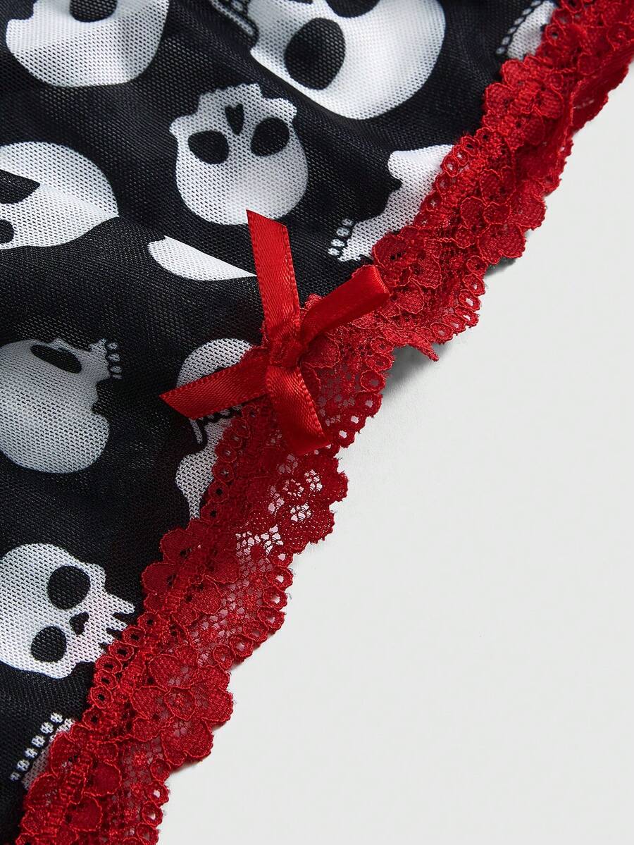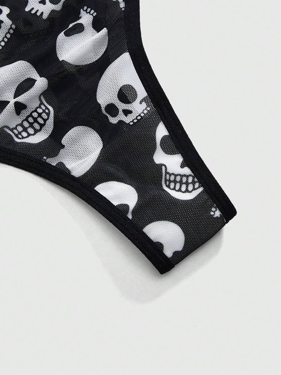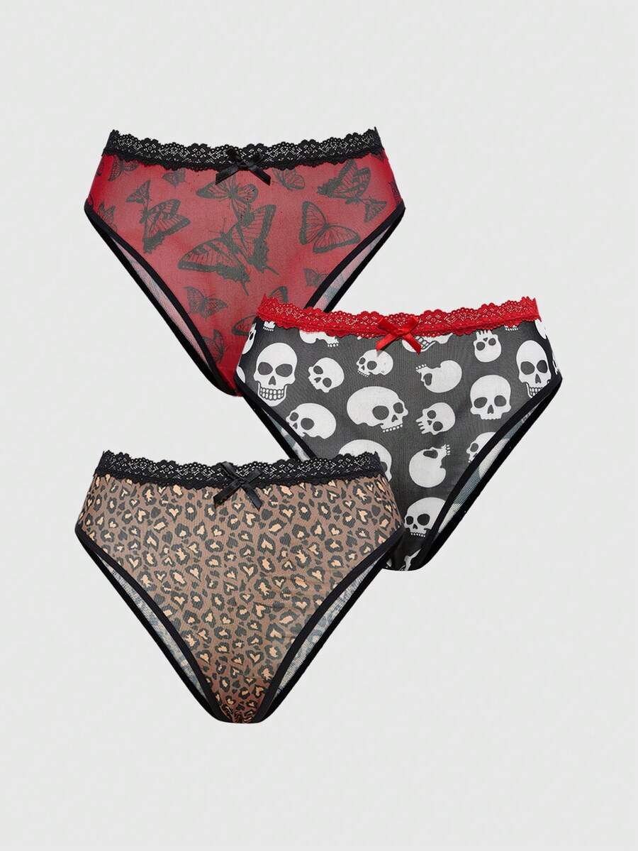 3pc Set Goth Style Skeleton, Leopard, Butterfly Net Patchwork Lace Thongs