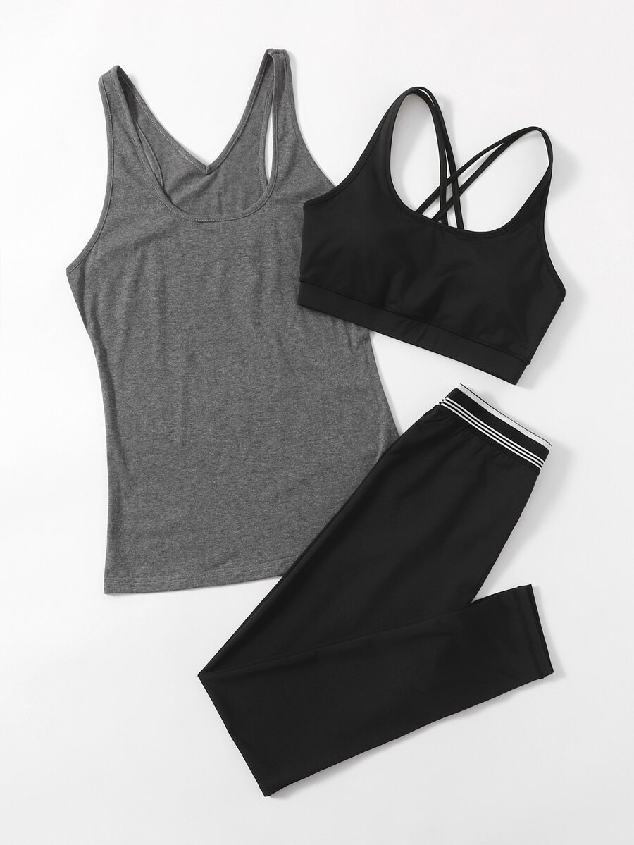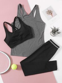 3pcs Criss-cross Sports Bra & Tank Top & Leggings