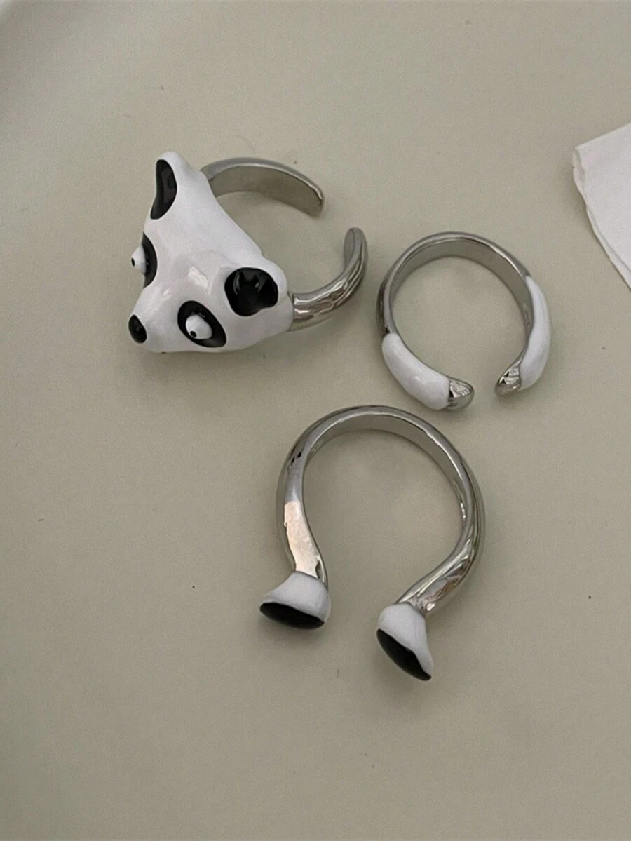 Kawaii 3pcs Cute Zinc Alloy Cartoon Panda Decor Cuff Ring For Women For Daily Decoration