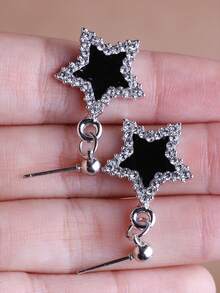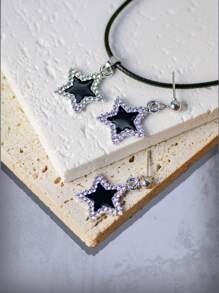 Goth 3pcs Fashion Zinc Alloy Rhinestone Star Decor Jewelry Set For Women For Dating Gift