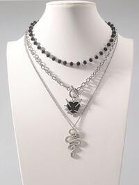 3pcs Fall Gothic Y2K Style Star Beaded Pendant Necklace, Suitable For Daily, Festival, Party, School, Commuting Wear, Exquisite Holiday Gift For Teenage Girls, Halloween