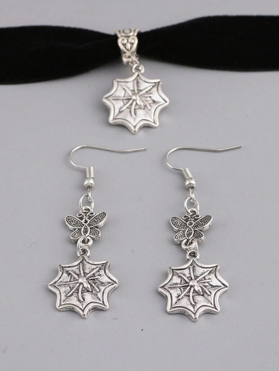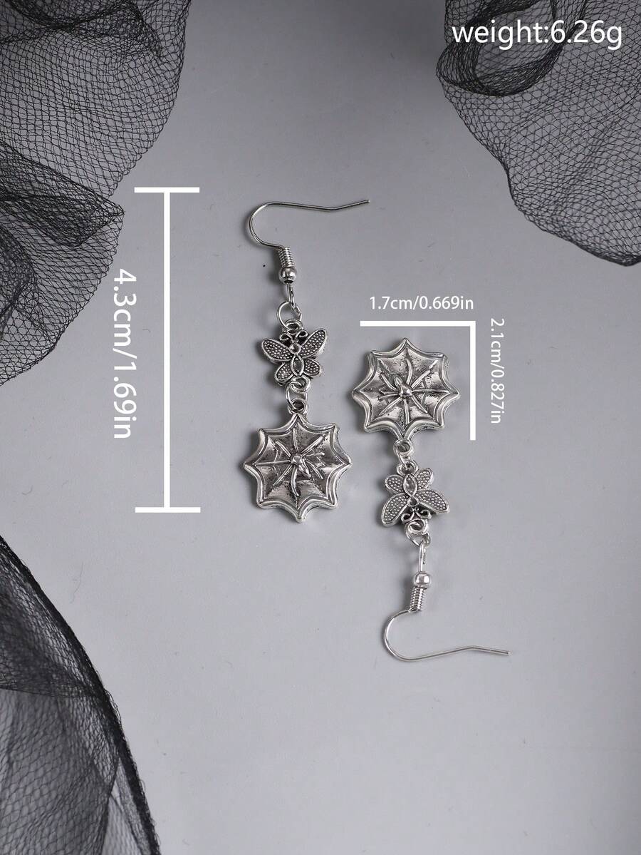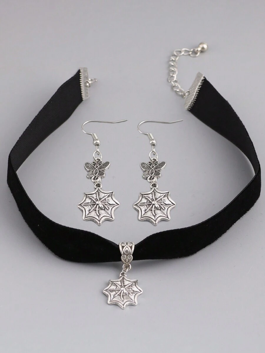 Goth 3pcs Funky Zinc Alloy Spider Web Decor Jewelry Set For Women For Daily Decoration