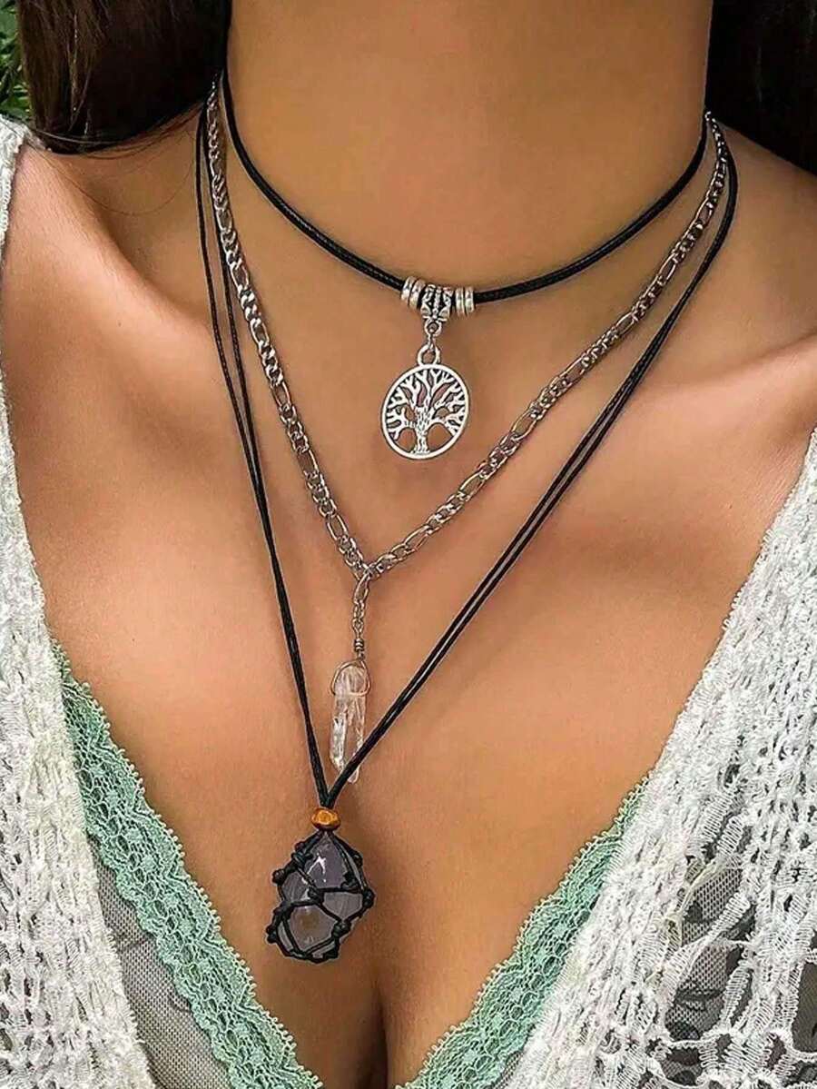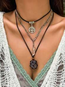 3pcs Gothic Style Black Beaded, Red Heart & Red Cross Necklace Set, Halloween Gift