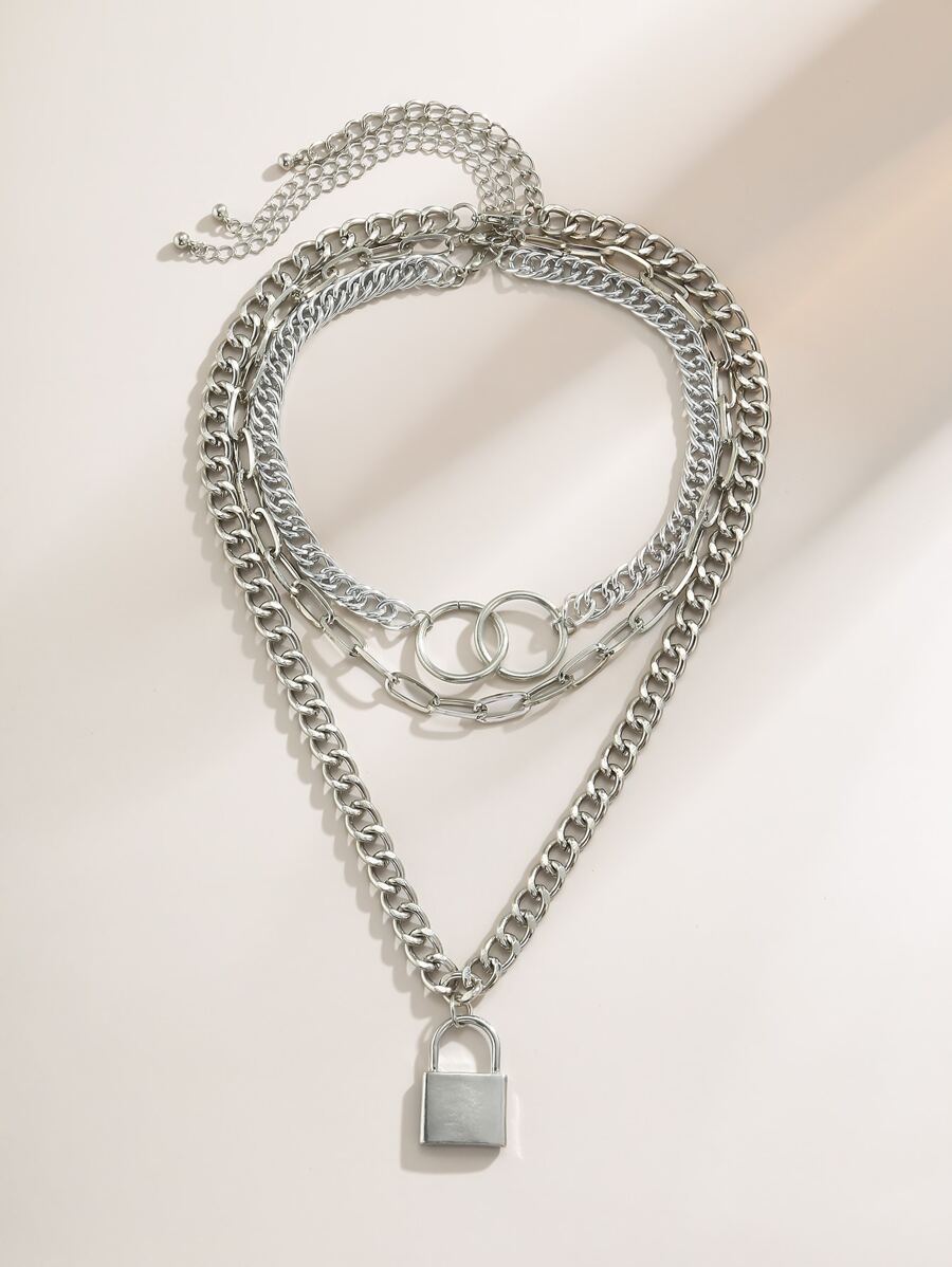 3pcs Lock Chain Layered Necklace