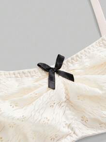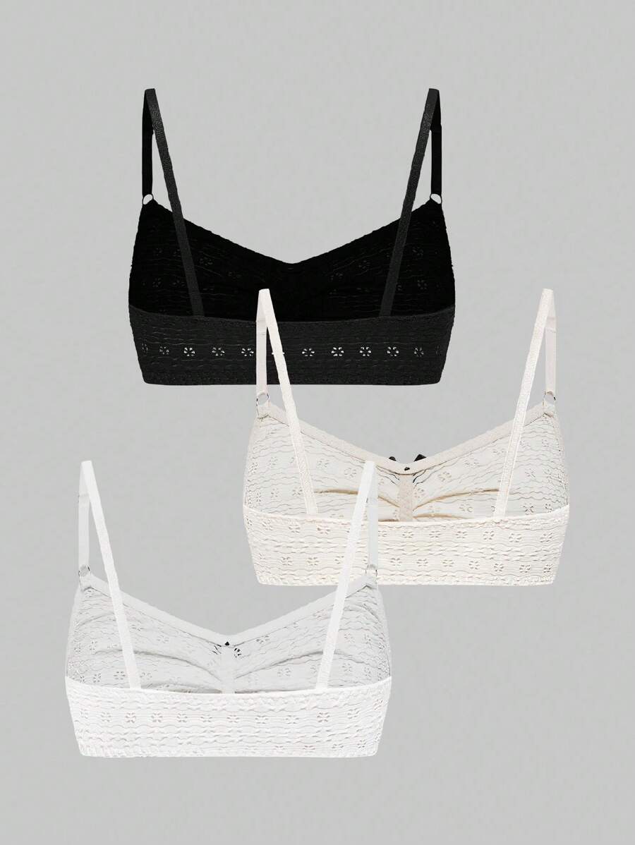 3pcs/Set Knitted Jacquard Bow Decor Casual Camisole Without Padding, Spaghetti Strap Bralette