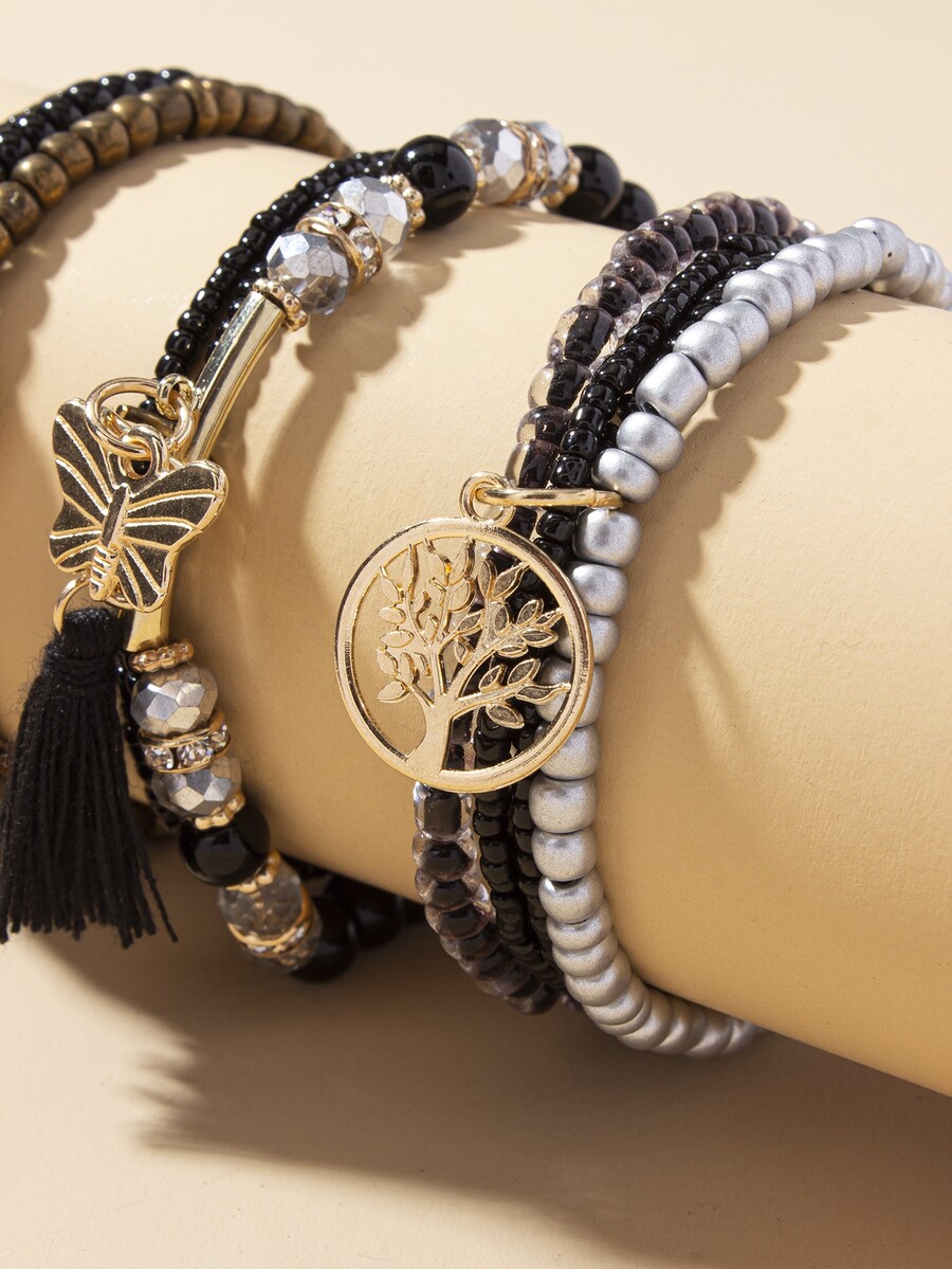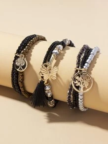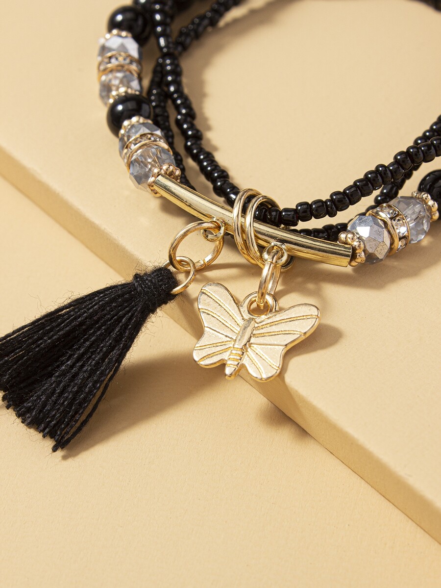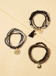 3pcs Tassel Charm Beaded Bracelet
