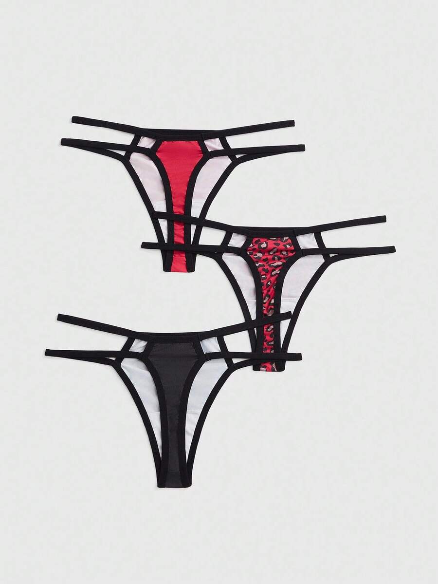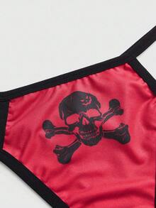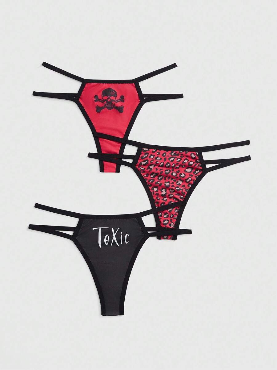 Goth 3pcs/Set Gothic Skeleton & Leopard Print Women's Thong Panties, Halloween