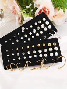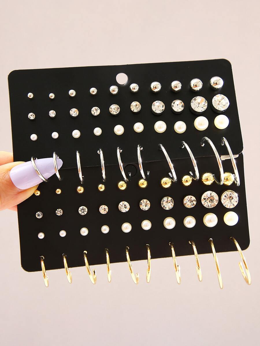 40pairs Fashion Rhinestone Decor Earrings For Women For Daily Decoration
