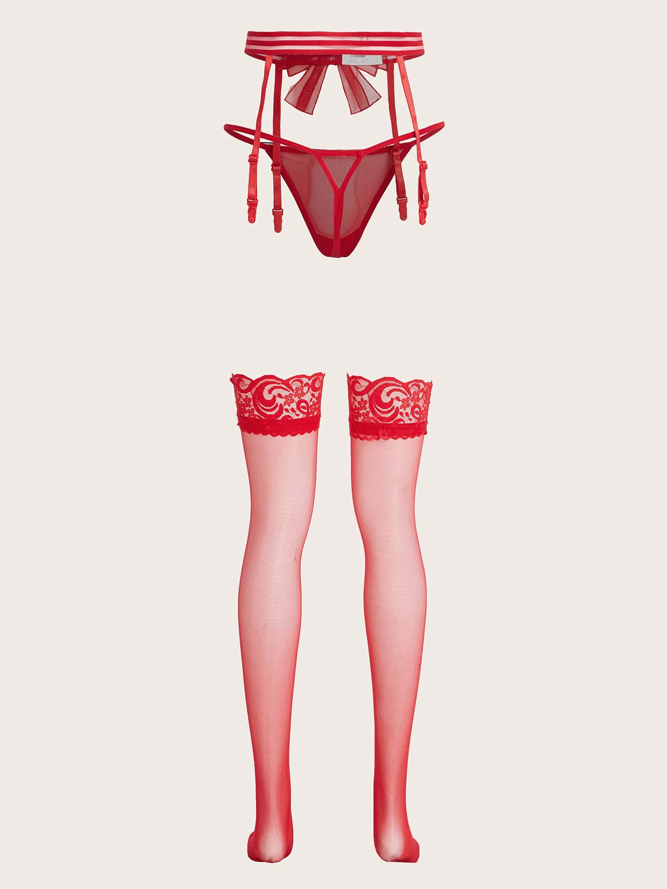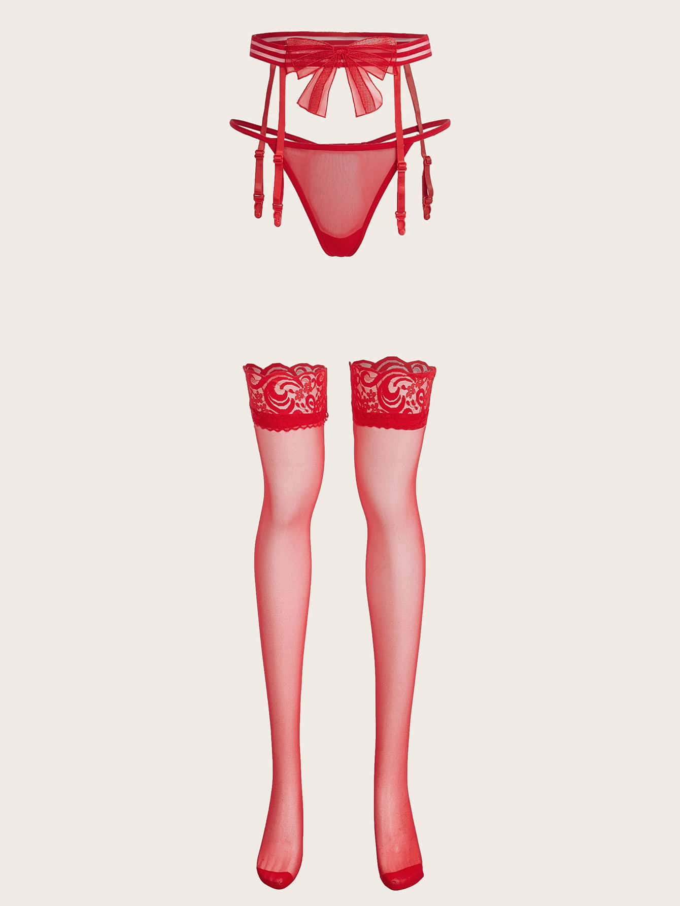 Sweetness 4pack Floral Lace Garter Thong With 1pair Stockings