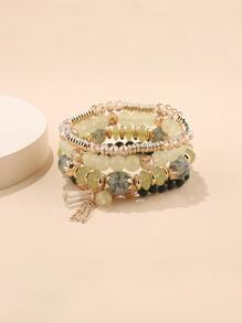 4pcs/Set Random Crystal Beaded Bracelet Boho Faux Agate Faux Pearl Tassel Chain Charm Beaded Bracelet Jewelry Gift For Women