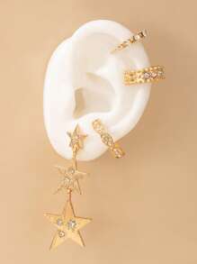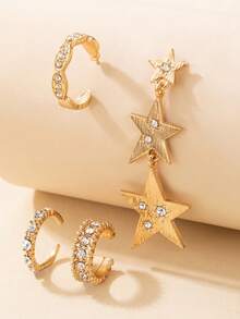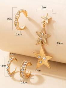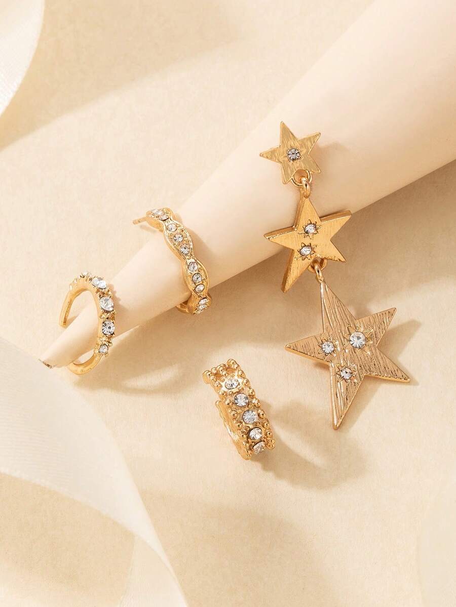4pcs Fashion Zinc Alloy Rhinestone Decor Star Earrings For Women For Dating Gift