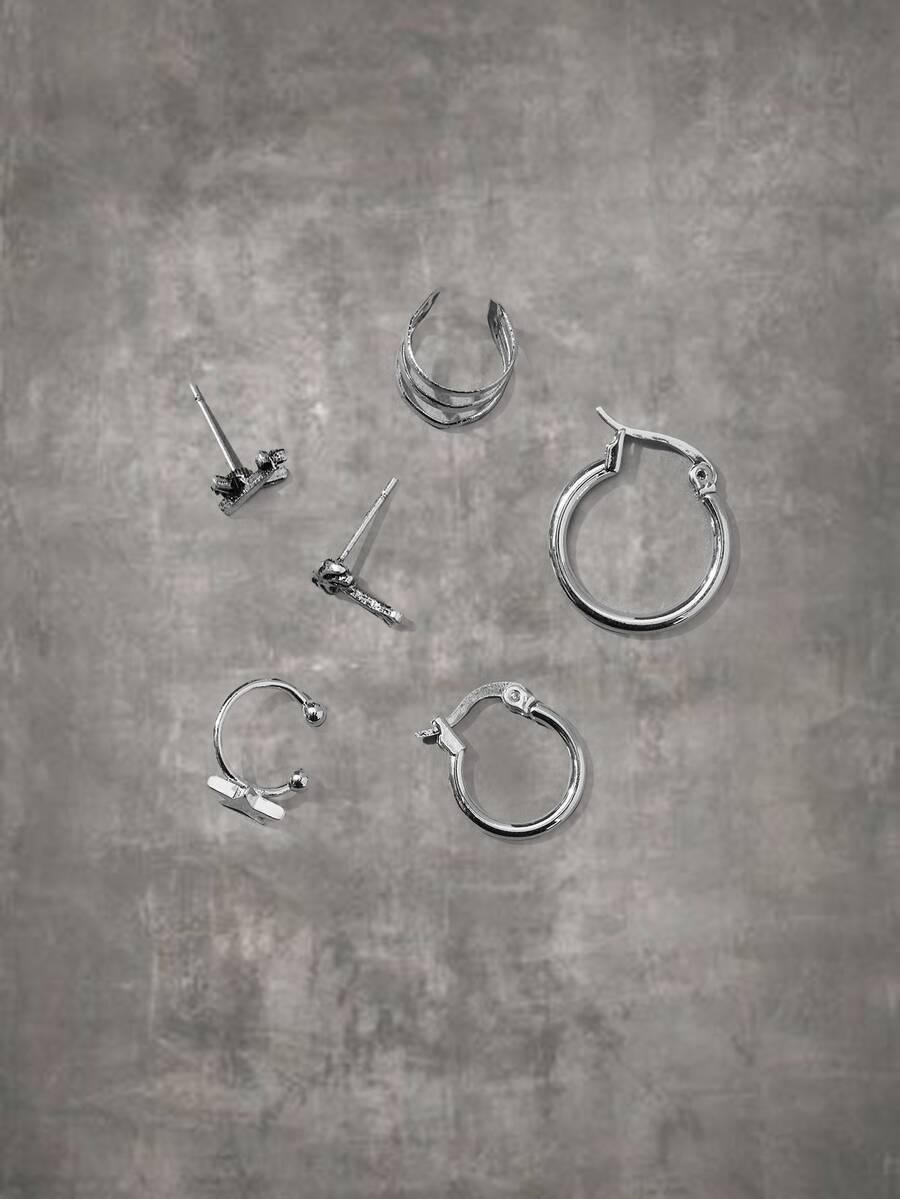 Grunge Punk 4pcs Plane Decor Earring & 2pcs Star Decor Ear Cuff