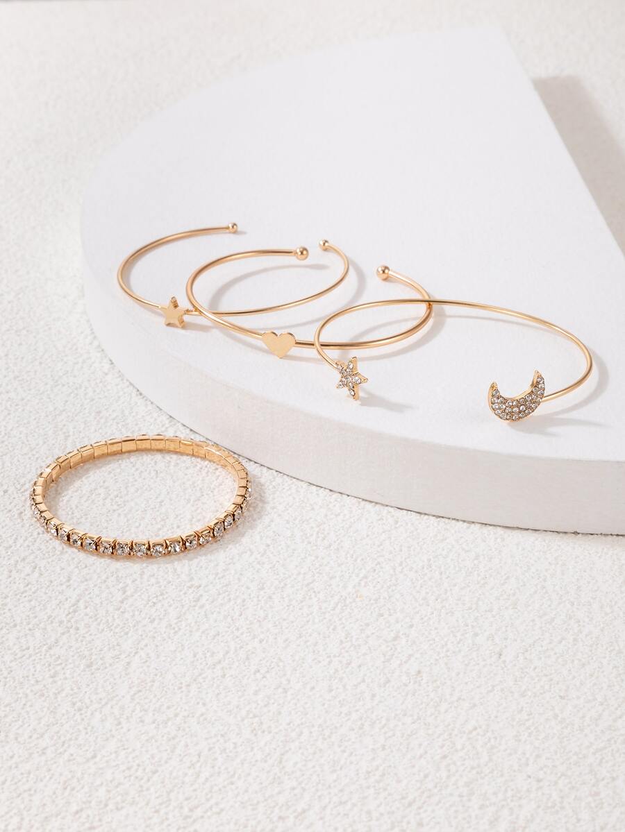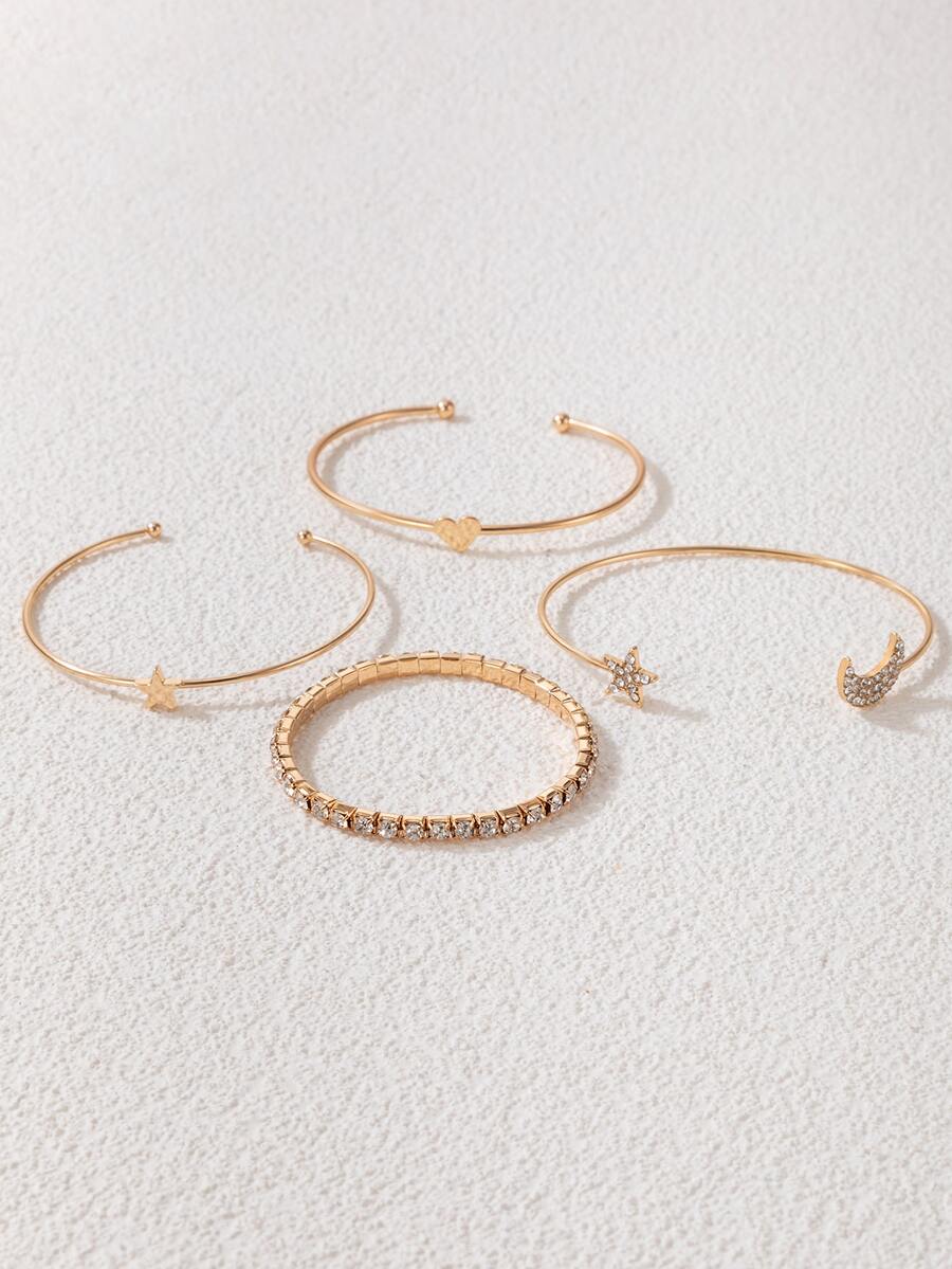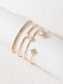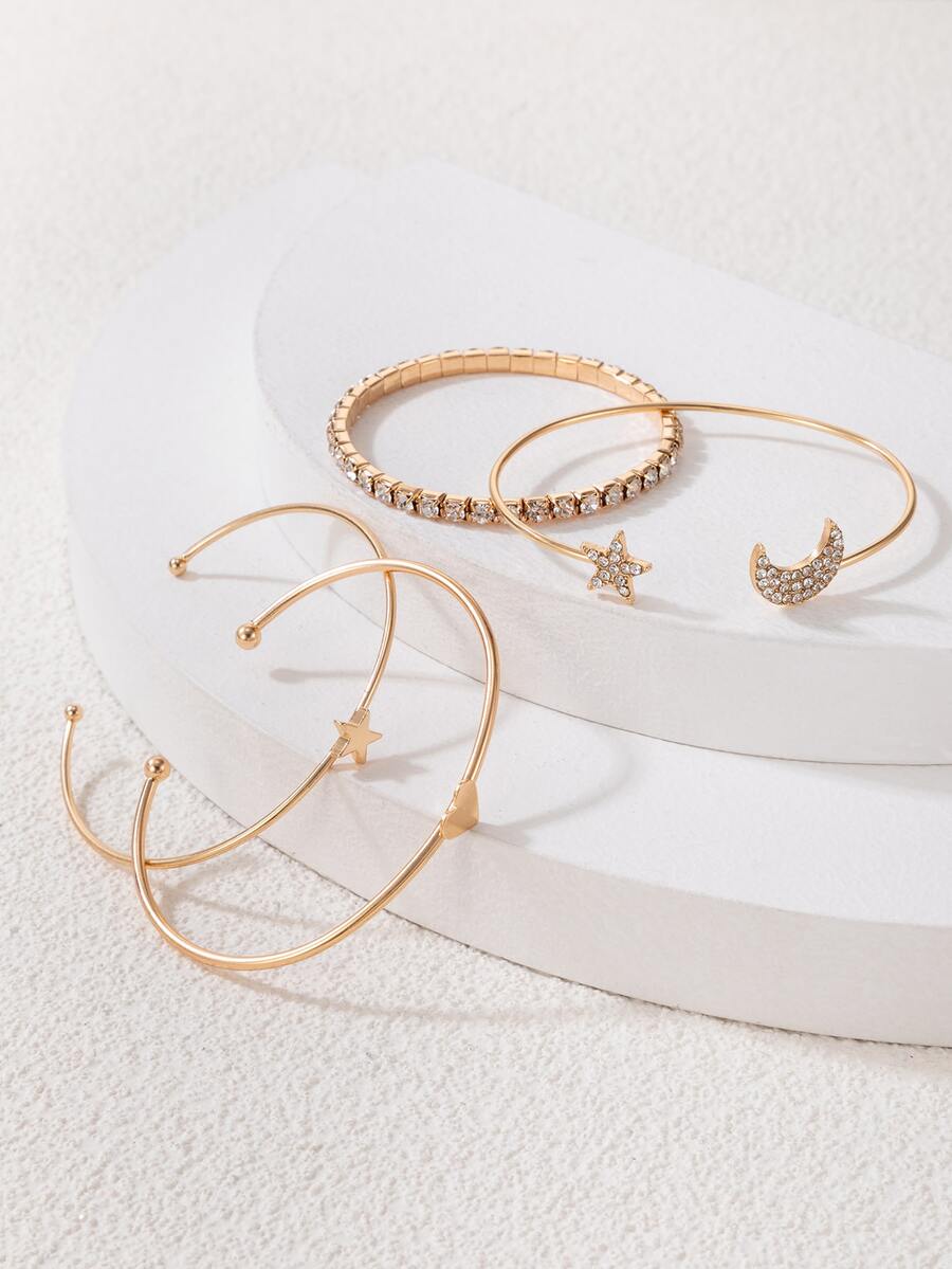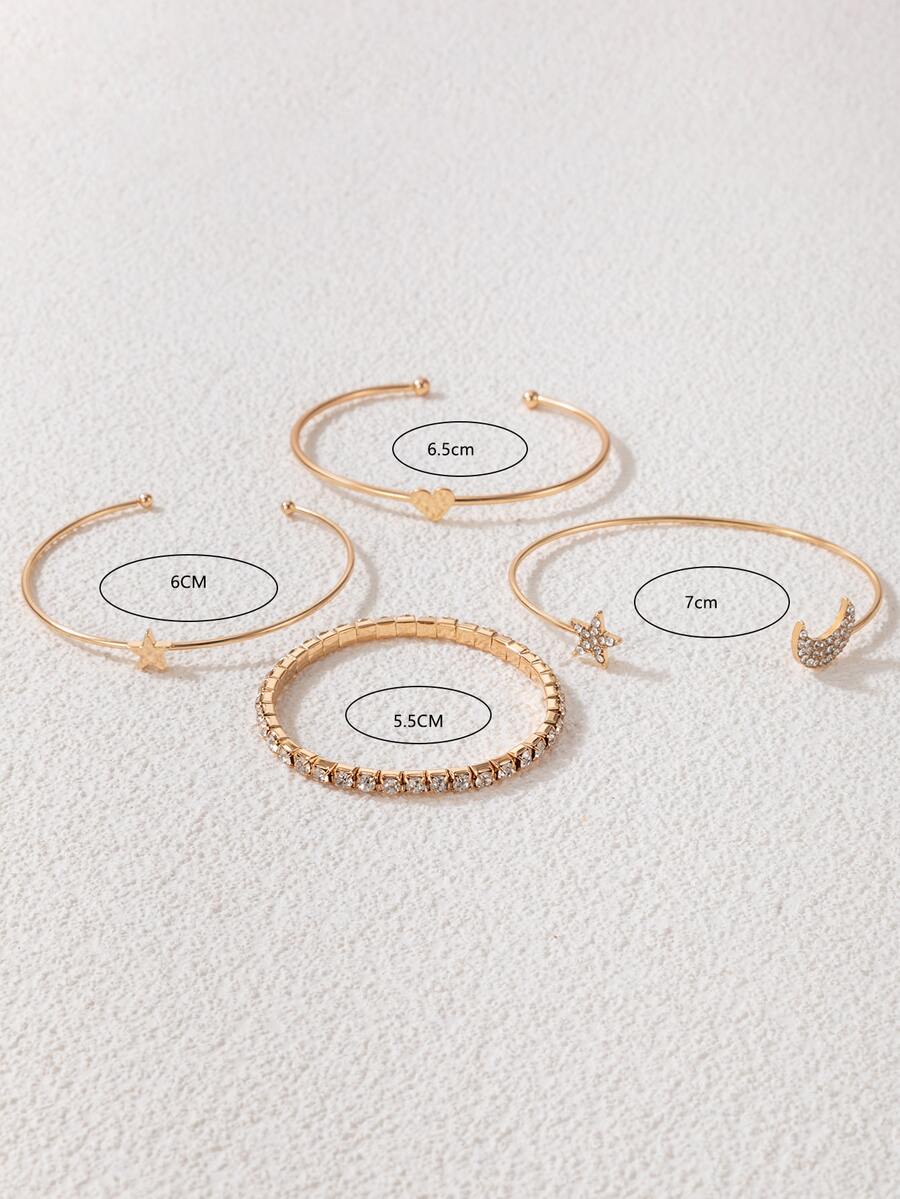 4pcs Rhinestone Moon & Star Decor Bracelet