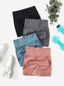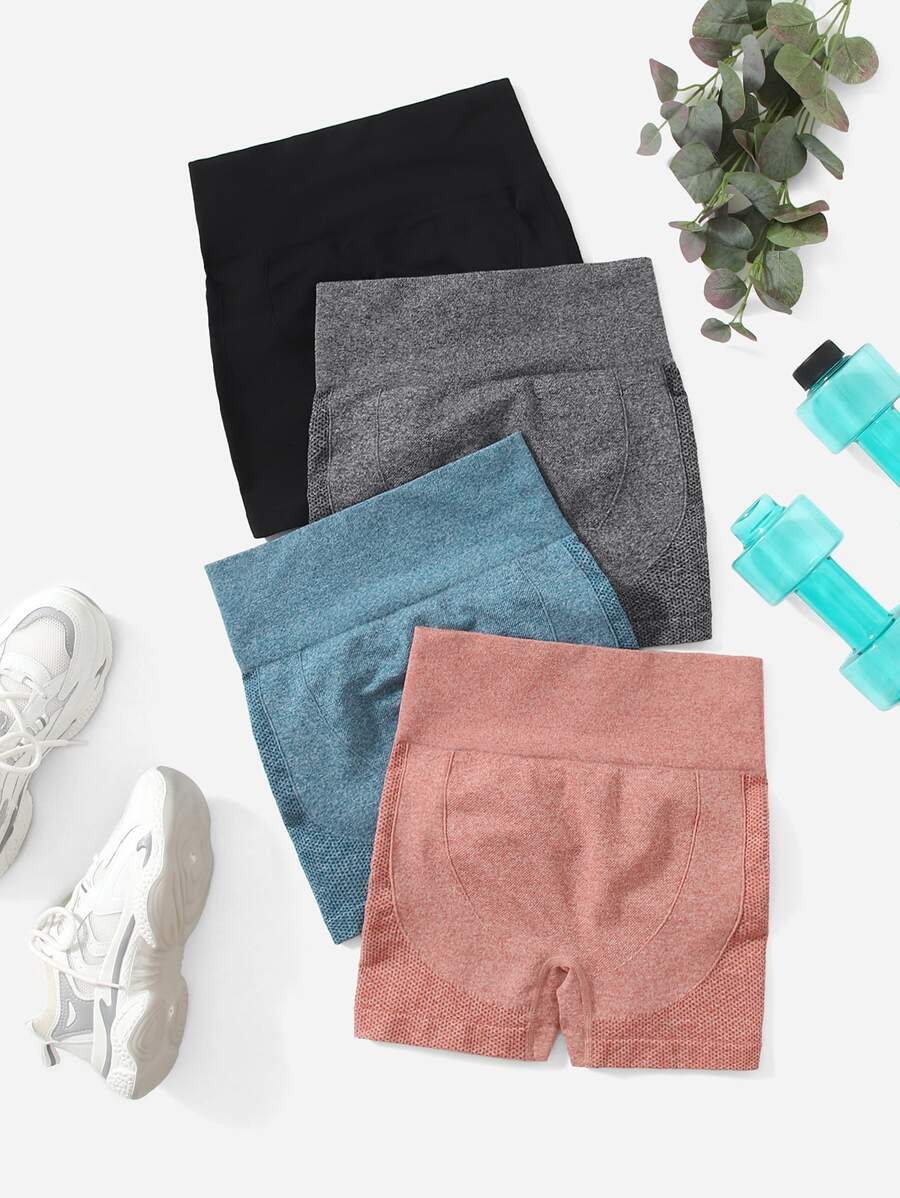 4pcs Seamless Wideband Waist Eyelet Detail Topstitching Sports Shorts