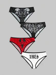 4pcs/Set Goth Style Skeleton Cross & Ghost Graphic Print Women Briefs