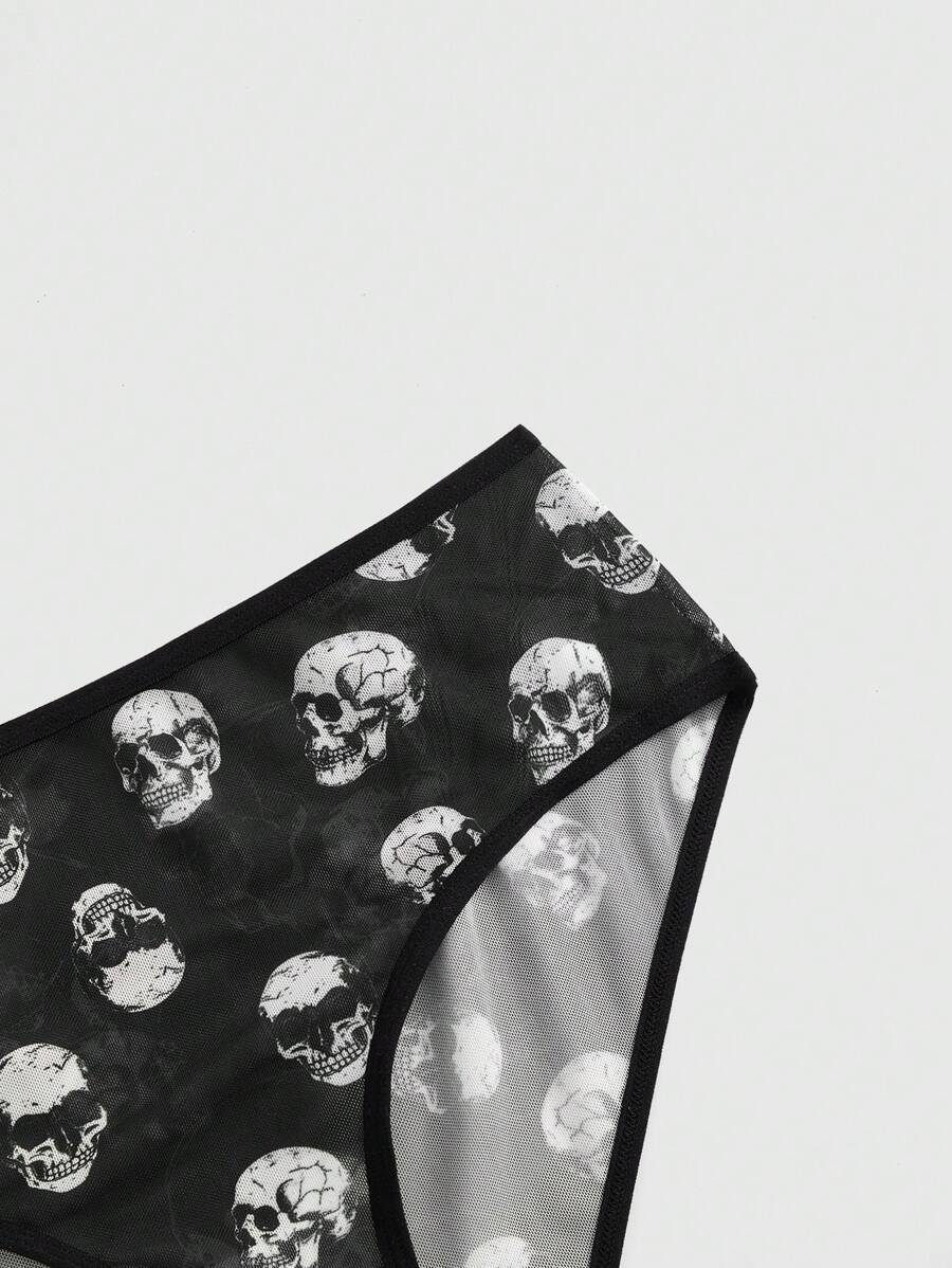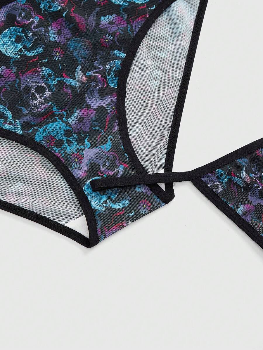 4pcs Set Gothic Skull & Floral Mesh Asymmetrical Triangle Panty & G-String