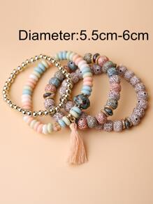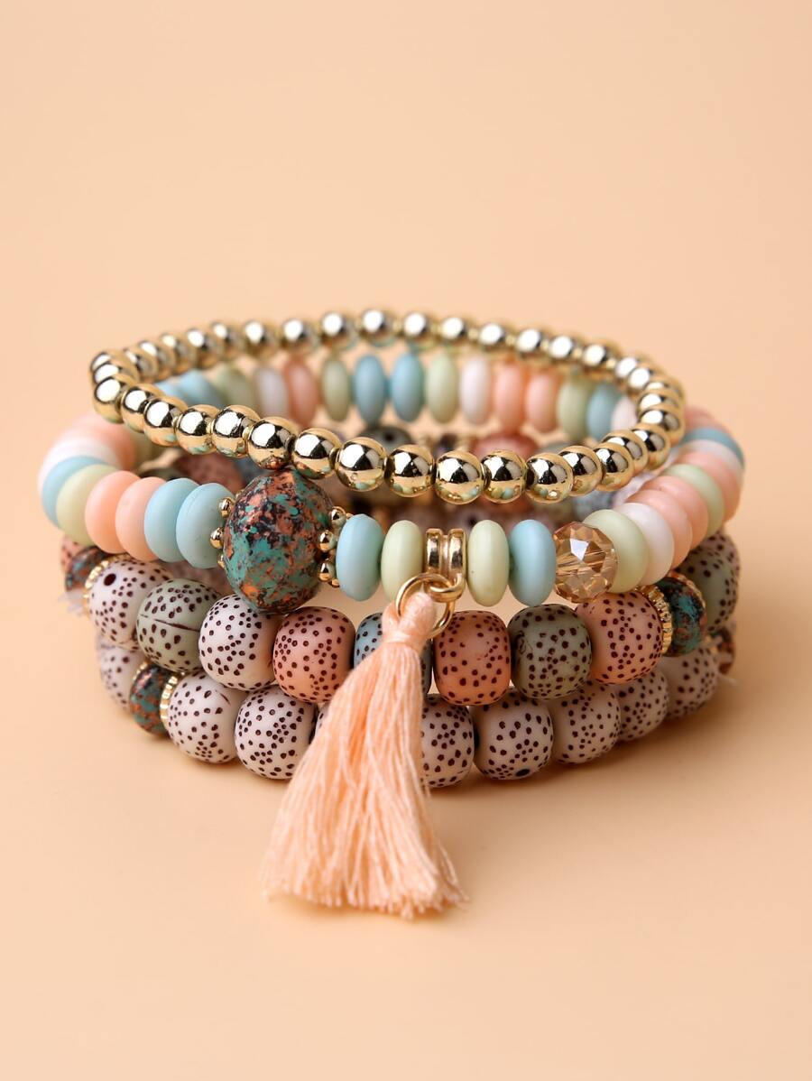 4pcs Tassel Charm Beaded Bracelet