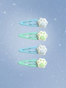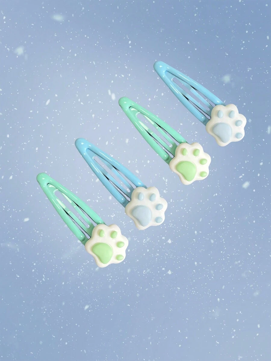 Kawaii 4pcs Women Paw Decor Hair Clip
