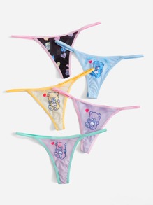 Kawaii 5pack Cartoon Bear Graphic Panty Set