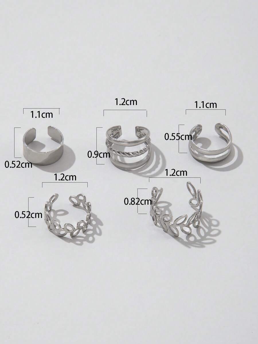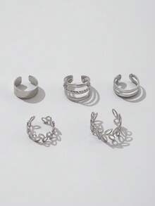 5pcs Fashion Zinc Alloy Leaf Design Hollow Out Ear Cuff For Women For Dating Gift