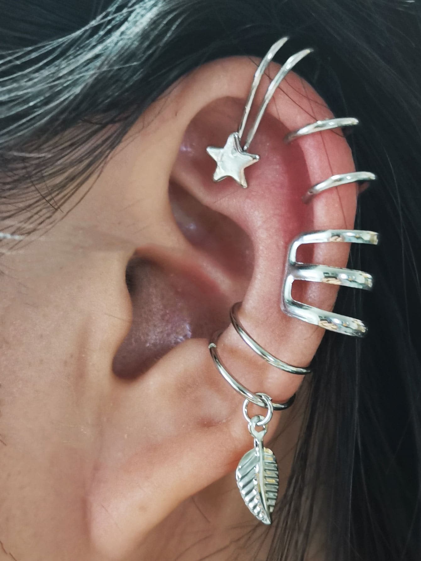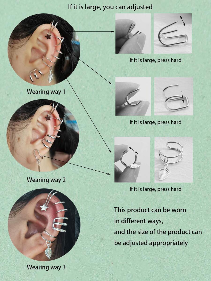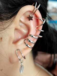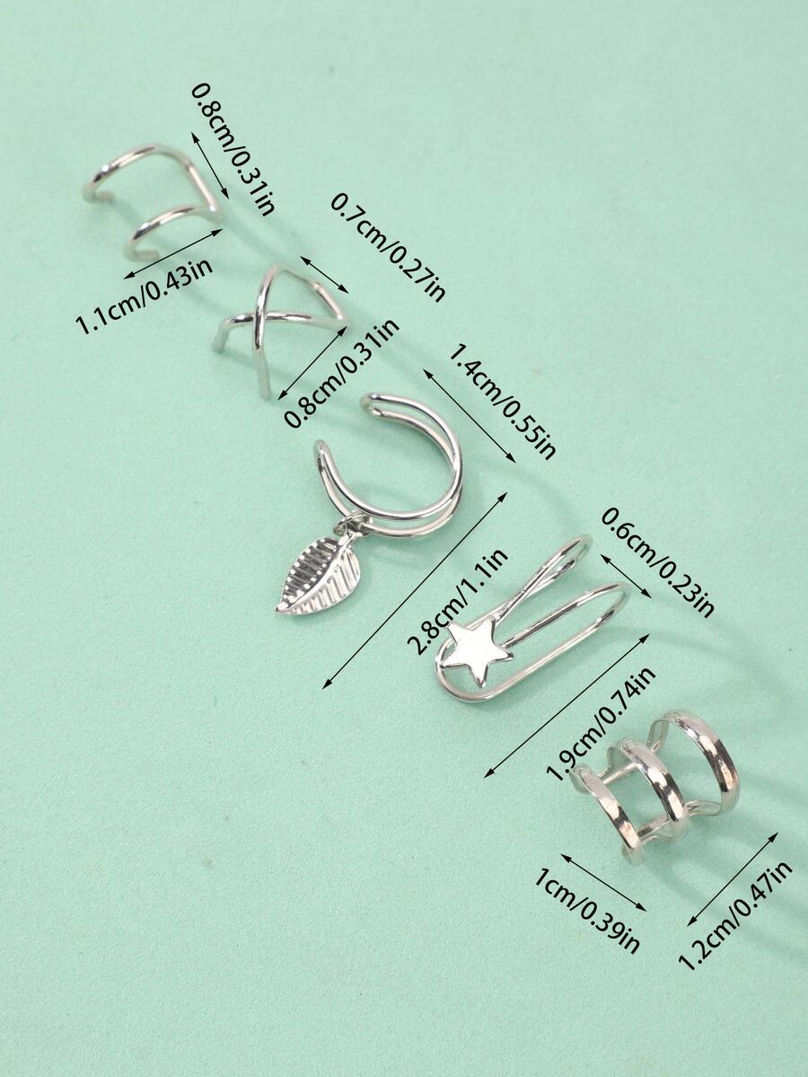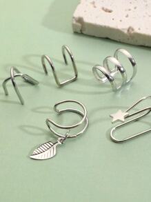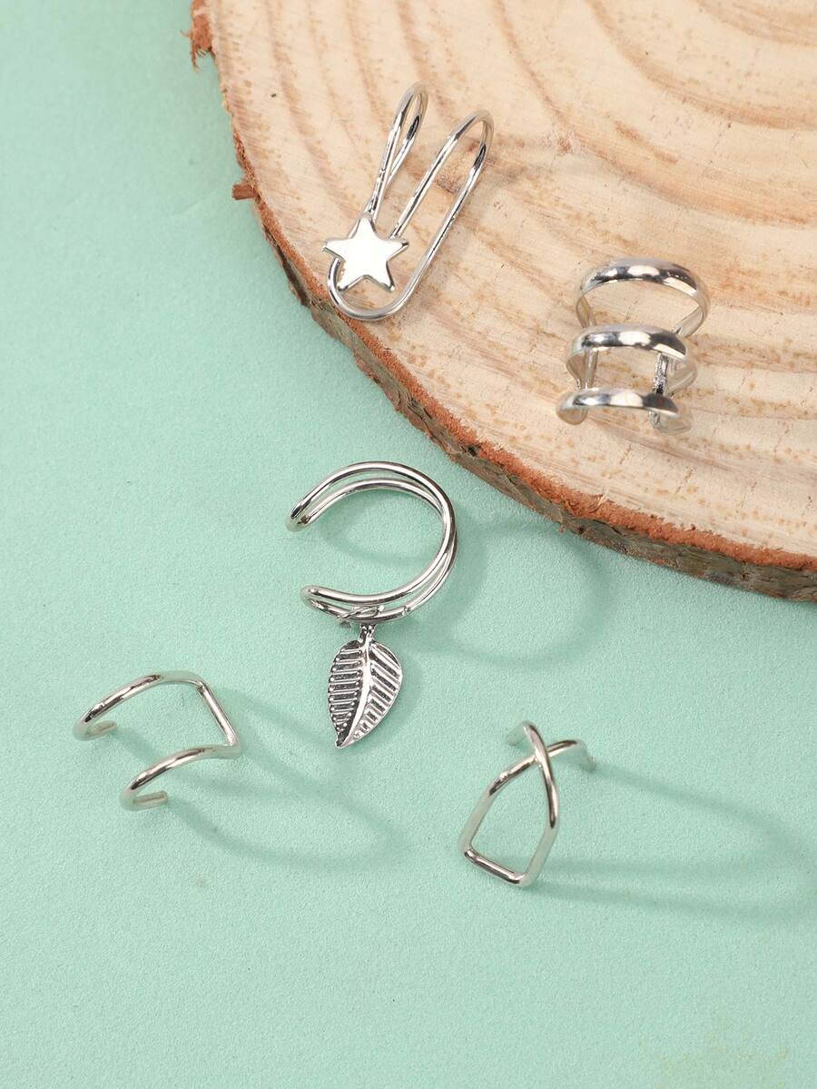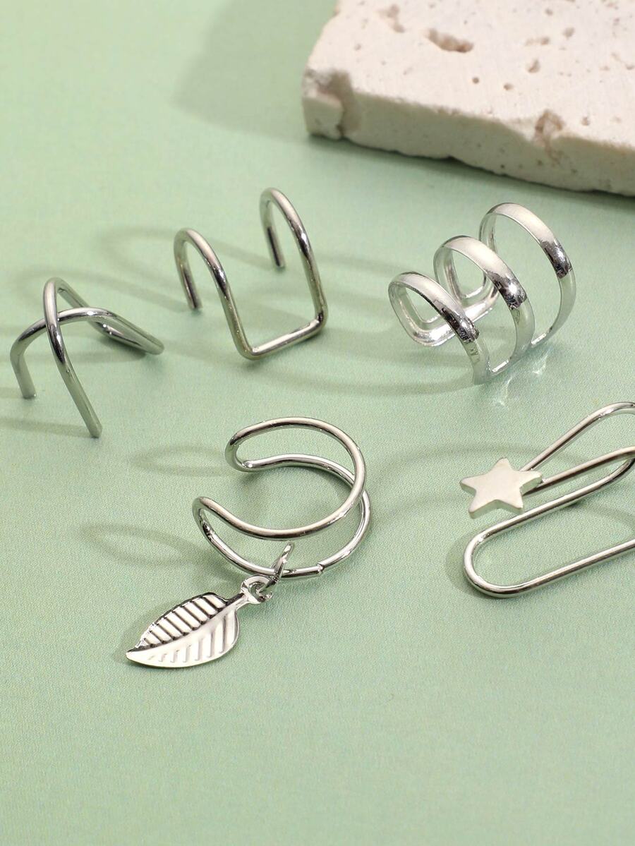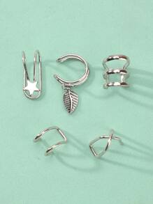 5pcs Leaf & Star Decor Ear Cuff
