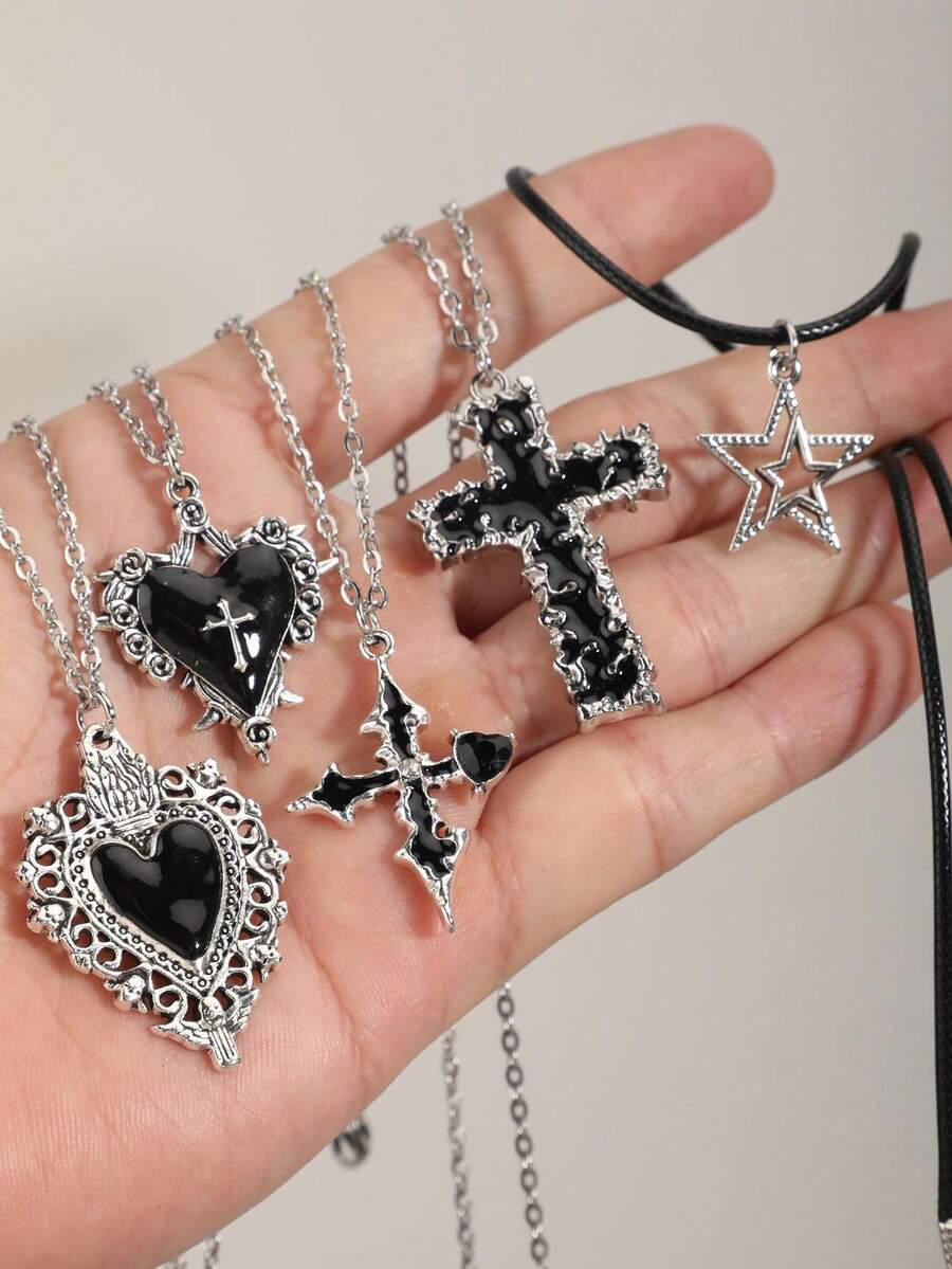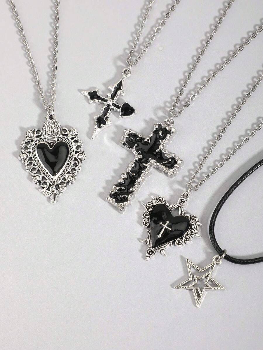 5pcs/Set Gothic Vintage Style Necklace Set Including Cross, Sun, Moon, Moth & Skull Pendant, Halloween
