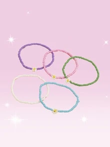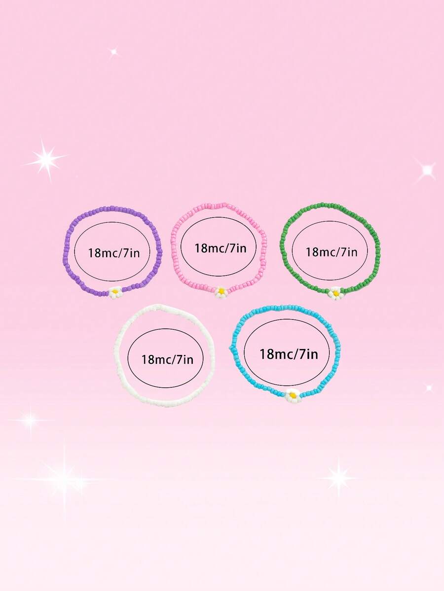 Sweetness 5pcs/set Flower Decor Beaded Bracelet
