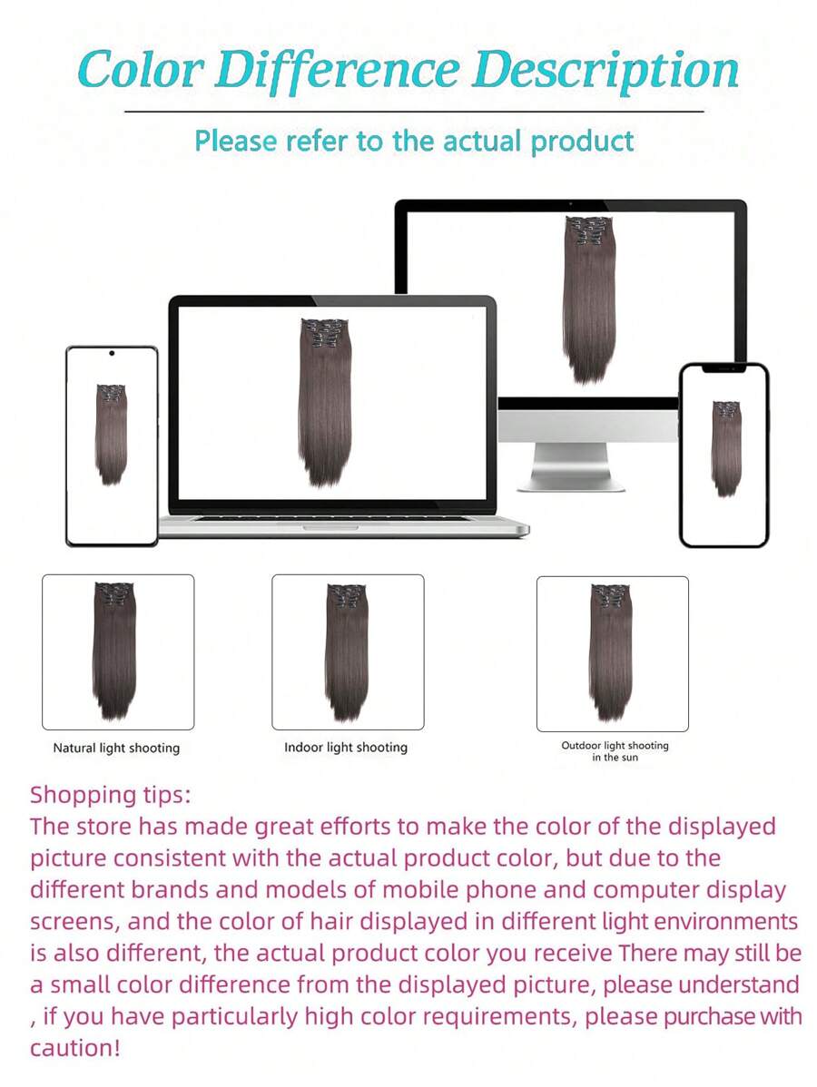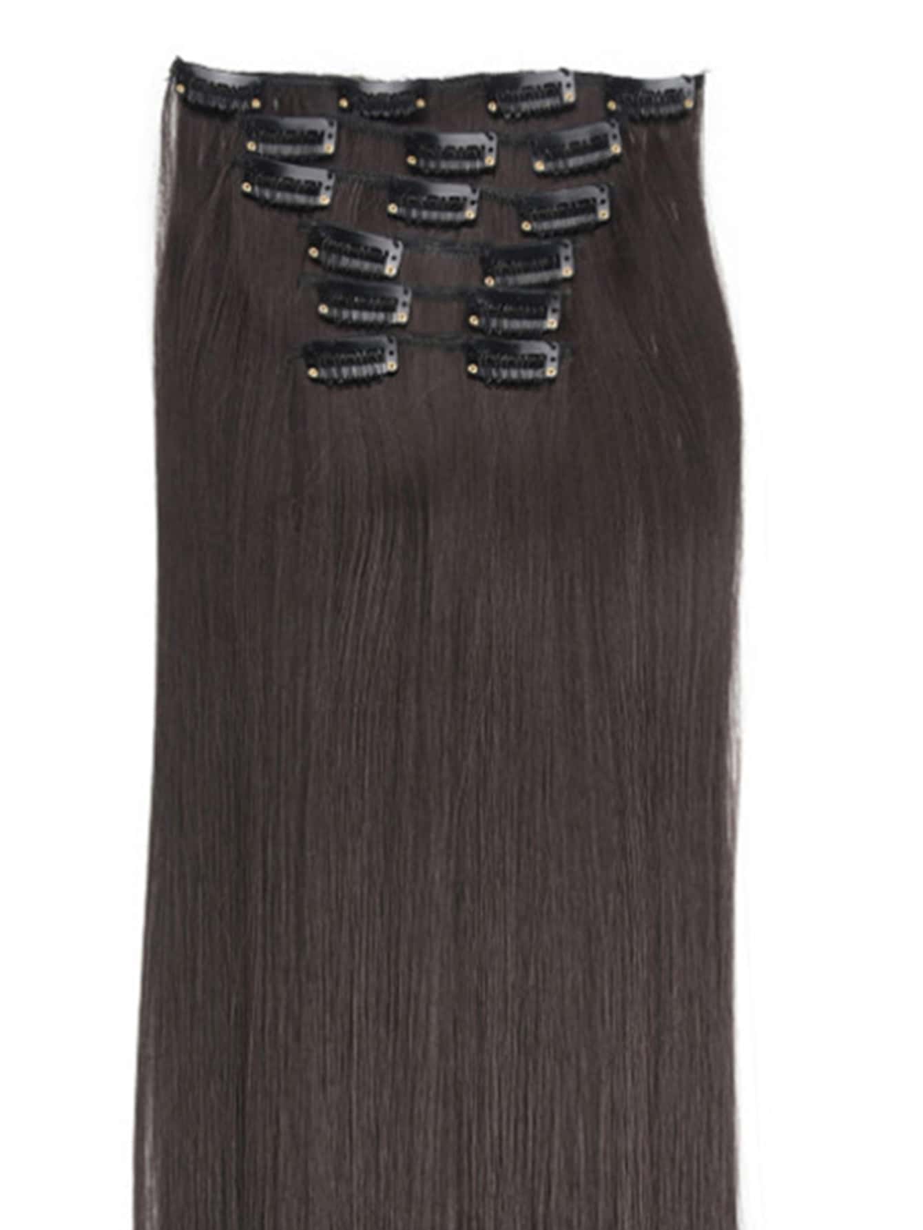 6 Pieces/Set 16 Clip Hair Extensions Black Long Straight Hair Natural Gradual Change Wig Heat Resistant Fiber Women's Hairstyle