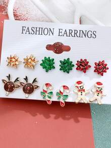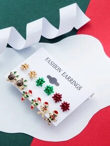 Kawaii 6pairs Cute Iron Alloy Christmas Decor Stud Earrings For Women For Daily Decoration