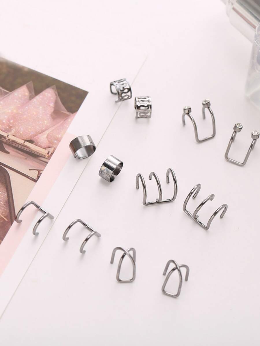 6pairs Fashion Zinc Alloy Rhinestone Decor Ear Cuff For Women For Daily Decoration