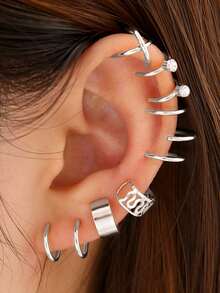 6pairs Fashion Zinc Alloy Rhinestone Decor Ear Cuff For Women For Daily Decoration