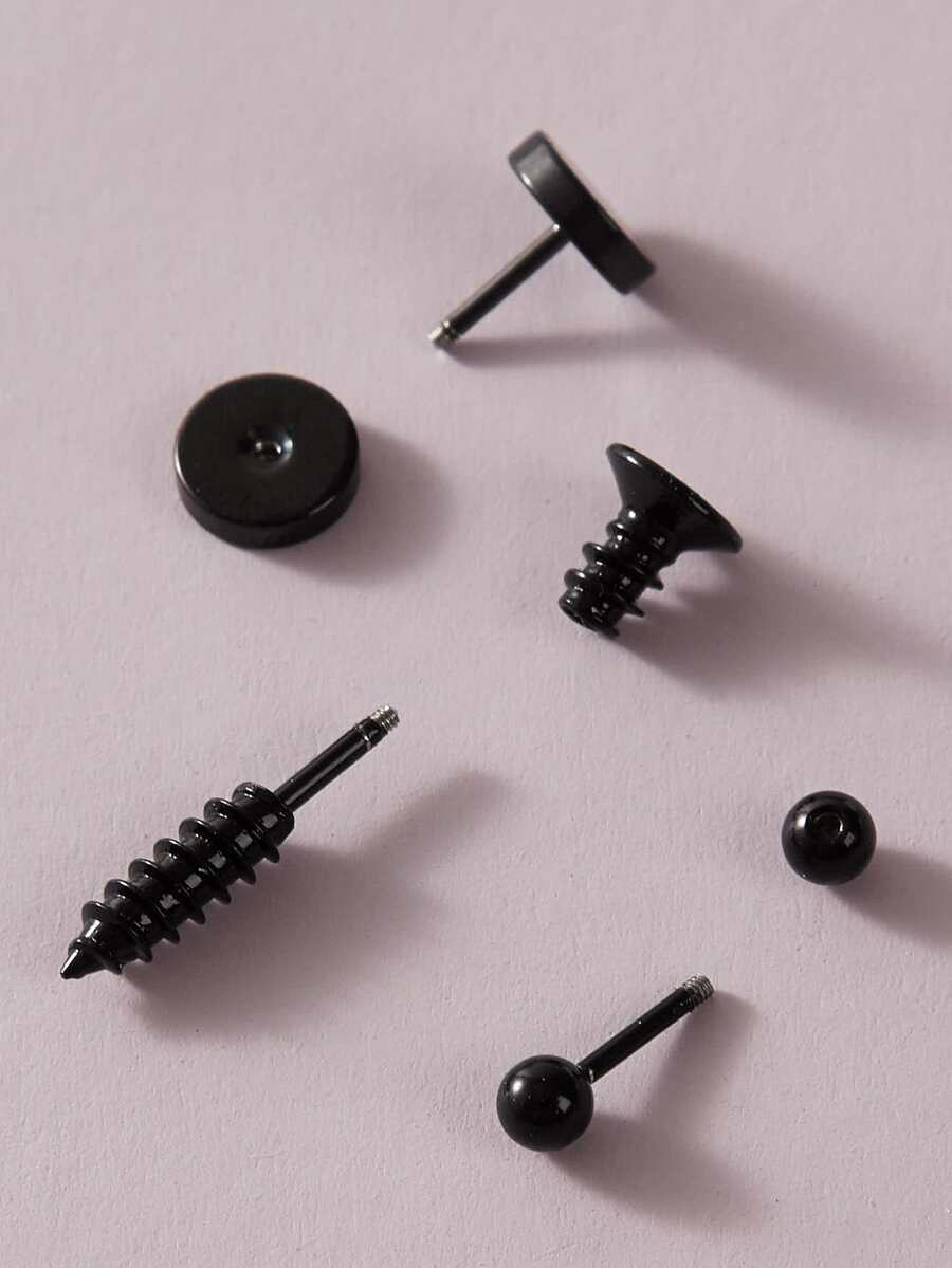 6pairs Round & Screw Shaped Earrings