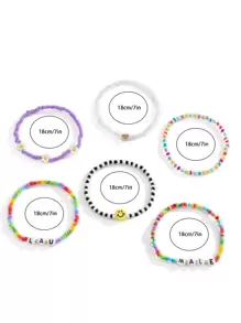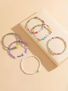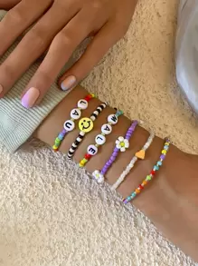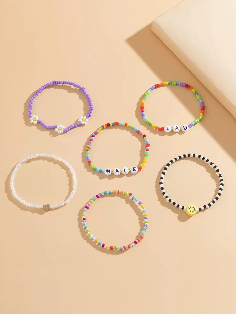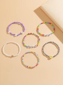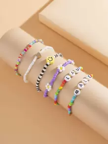 6pcs/set Letter Graphic Heart & Flower Decor Beaded Bracelet