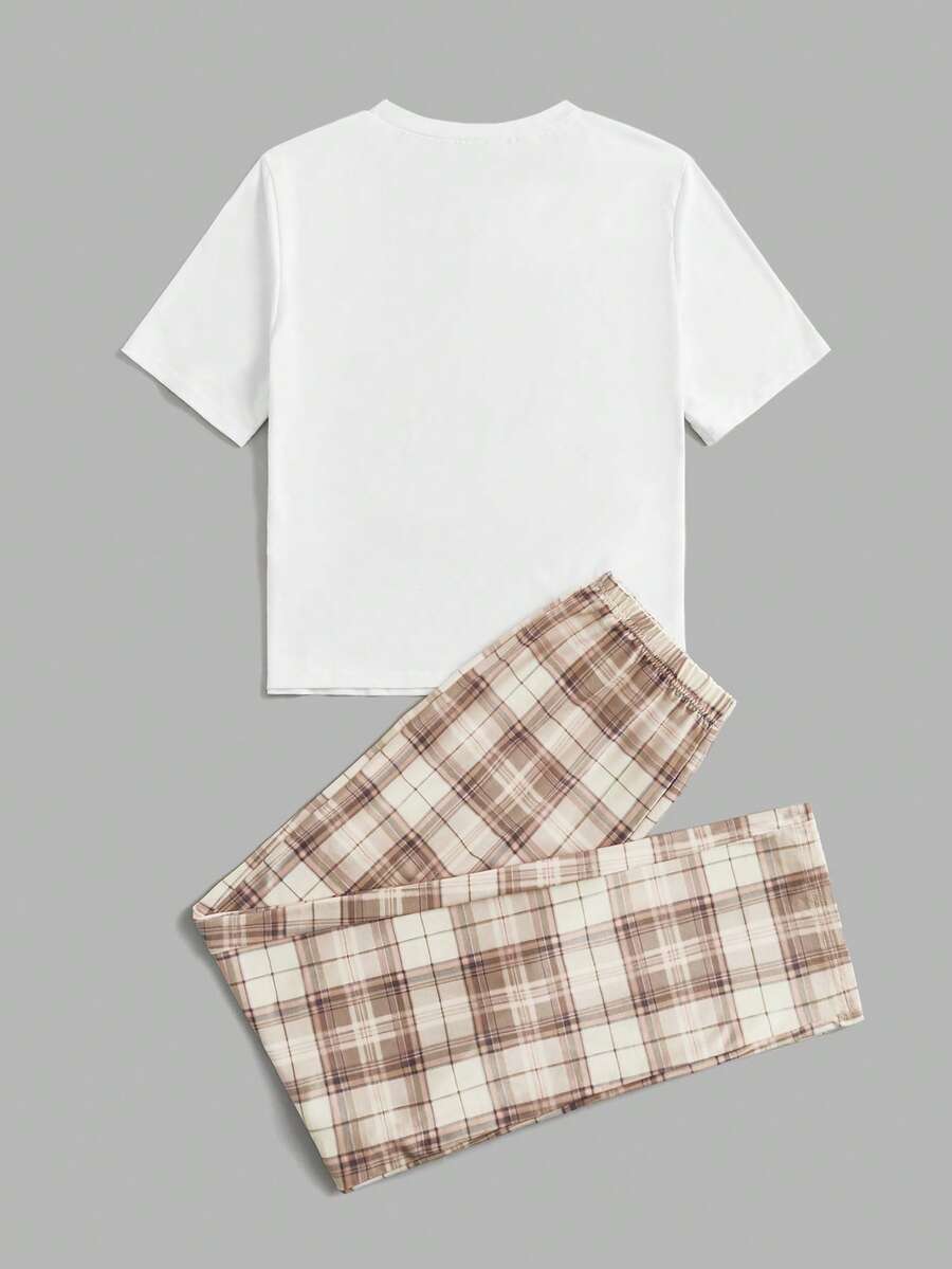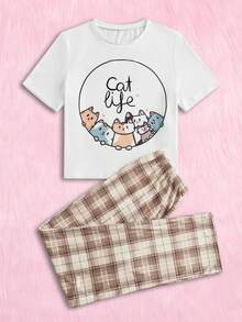 AKIKODRAWS Cartoon Graphic Tee & Plaid Pants PJ Set