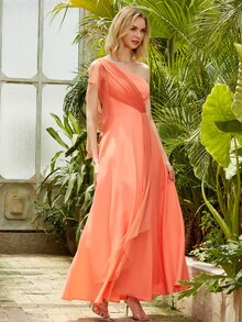 ANGEL FASHIONS One Shoulder Lace Up Back Prom Dress