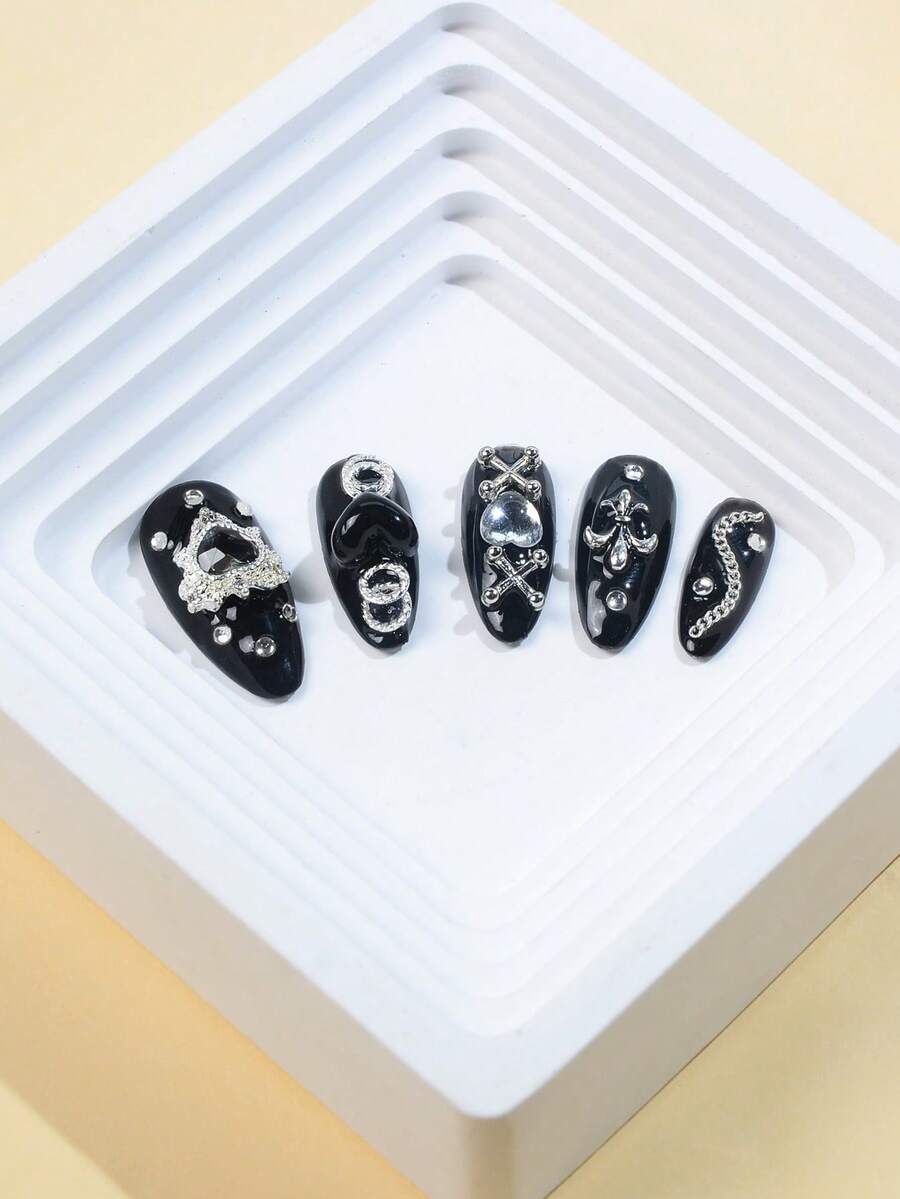 Academia 10pcs Long Almond Heart Pattern Fake Nail Kit
