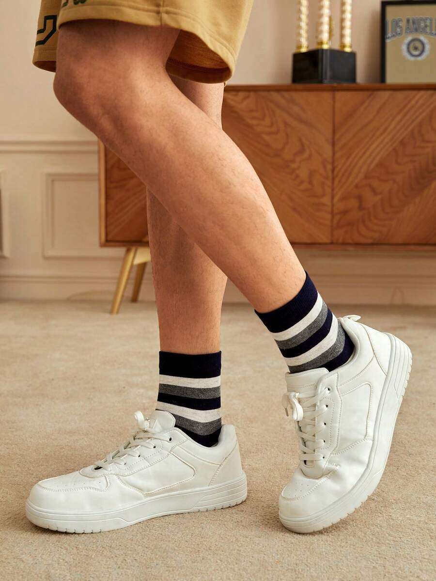 Academia 1pair Guys Striped Pattern Socks