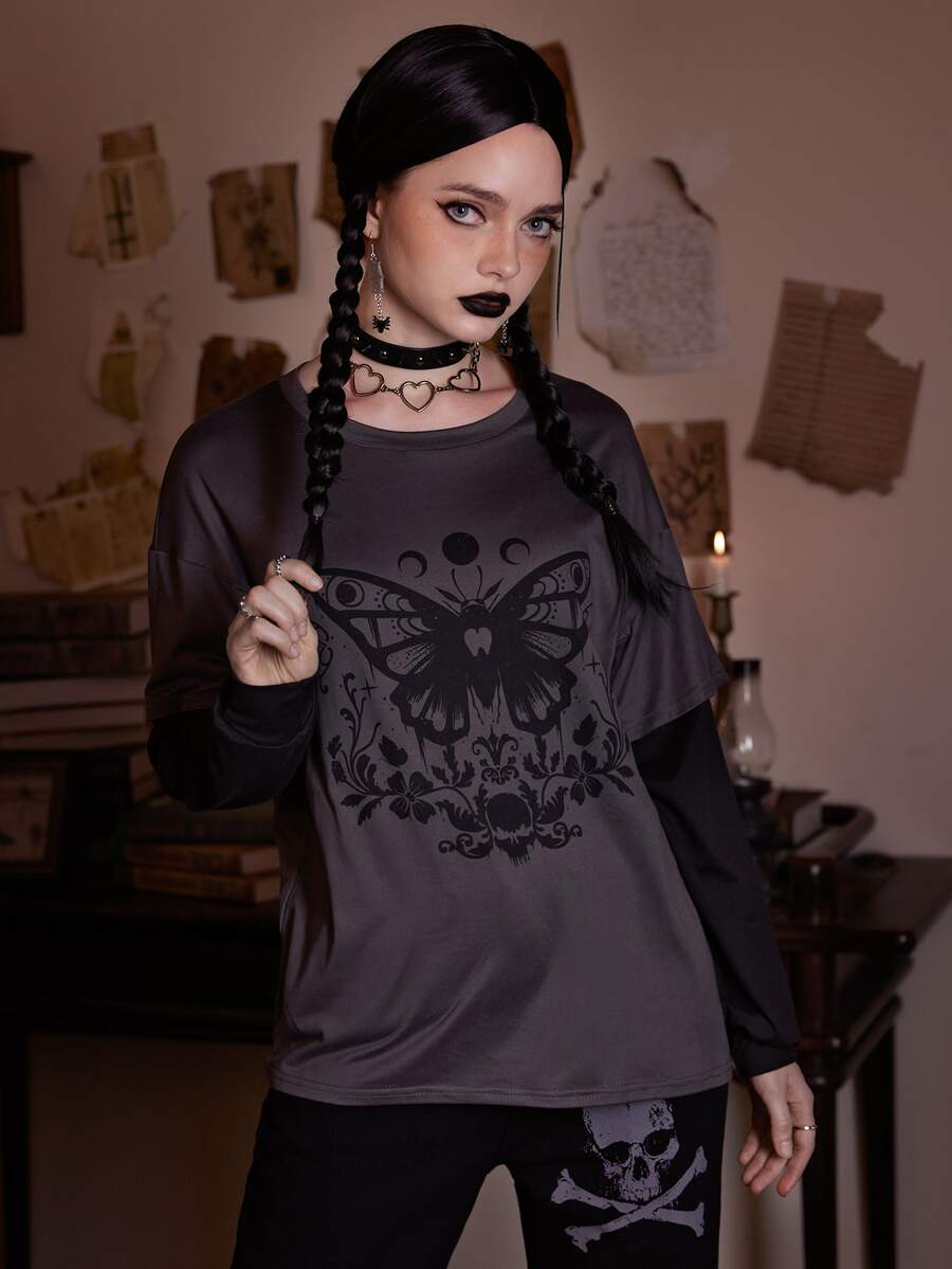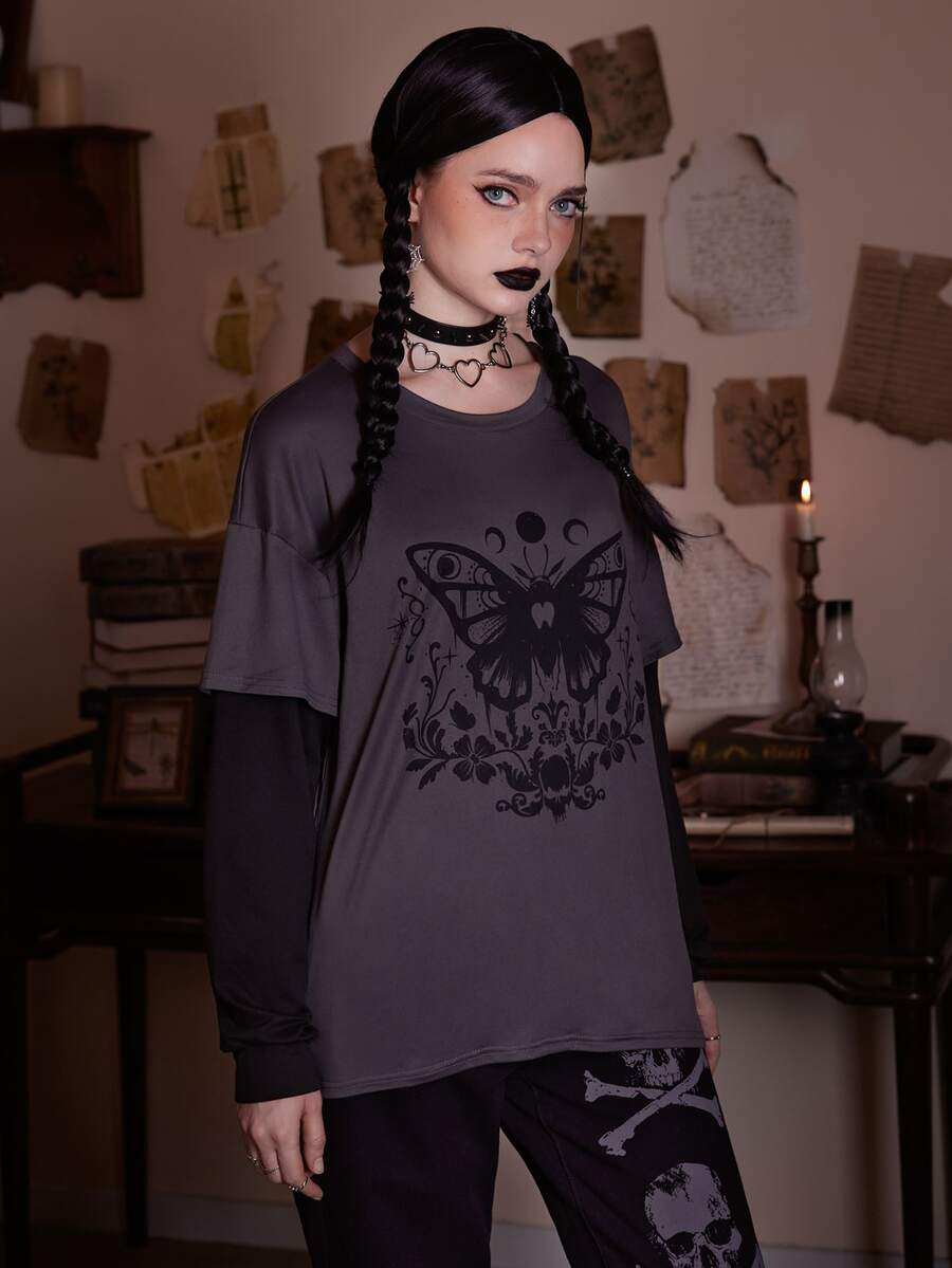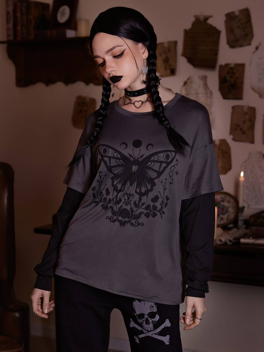 Academia 2 In 1 Butterfly & Skull Graphic Tee