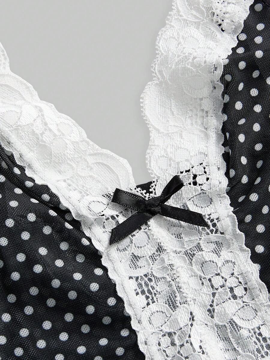 Academia Hot Girl Dot Mesh Lace Patchwork Wireless Sheer Sexy Lingerie Set