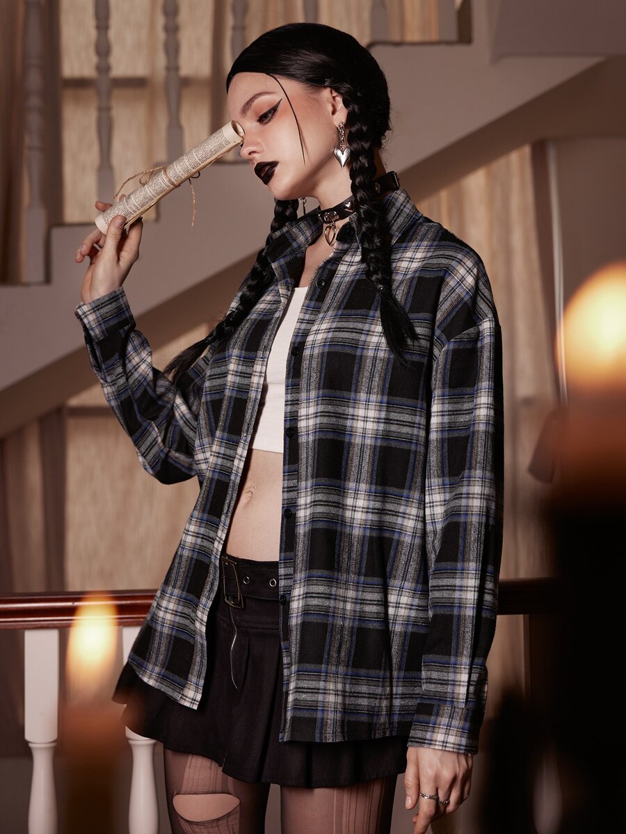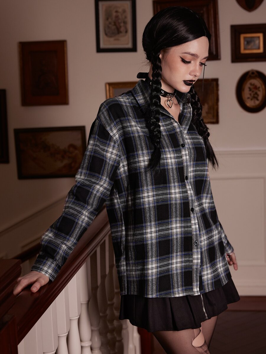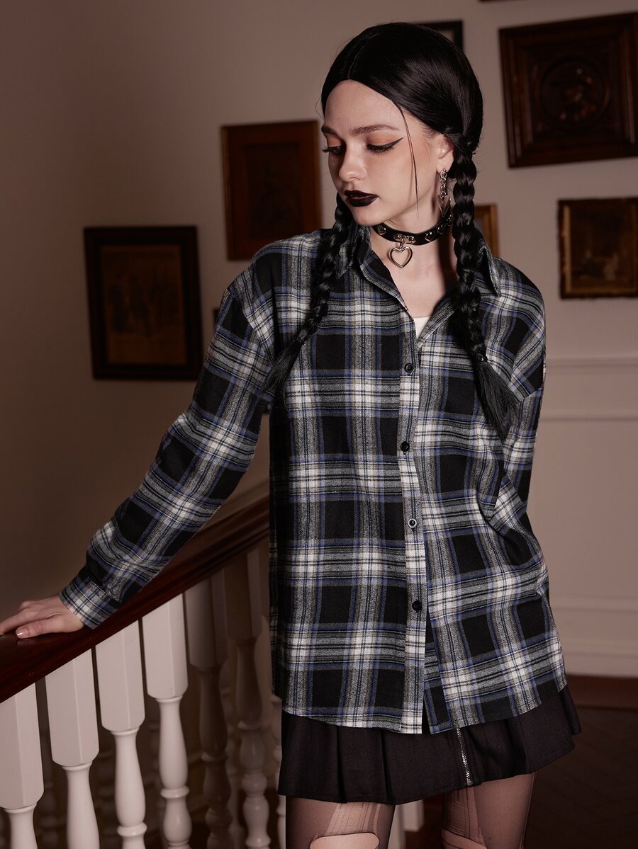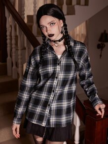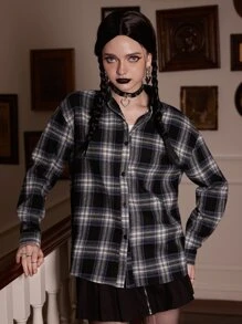 Academia Plaid Button Front Shirt