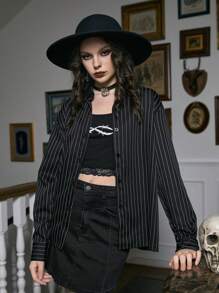 Academia Striped Print Button Front Shirt