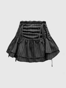 Academia Sweet Academy Preppy Style Waistband Pleated Lace & Floral Spliced Mini Cake Skirt For Women (Including Shorts), School