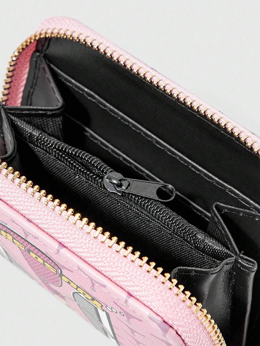 Adventure Time X ROMWE 1pc Letter & Cartoon Design Pink Fashion Short Wallet