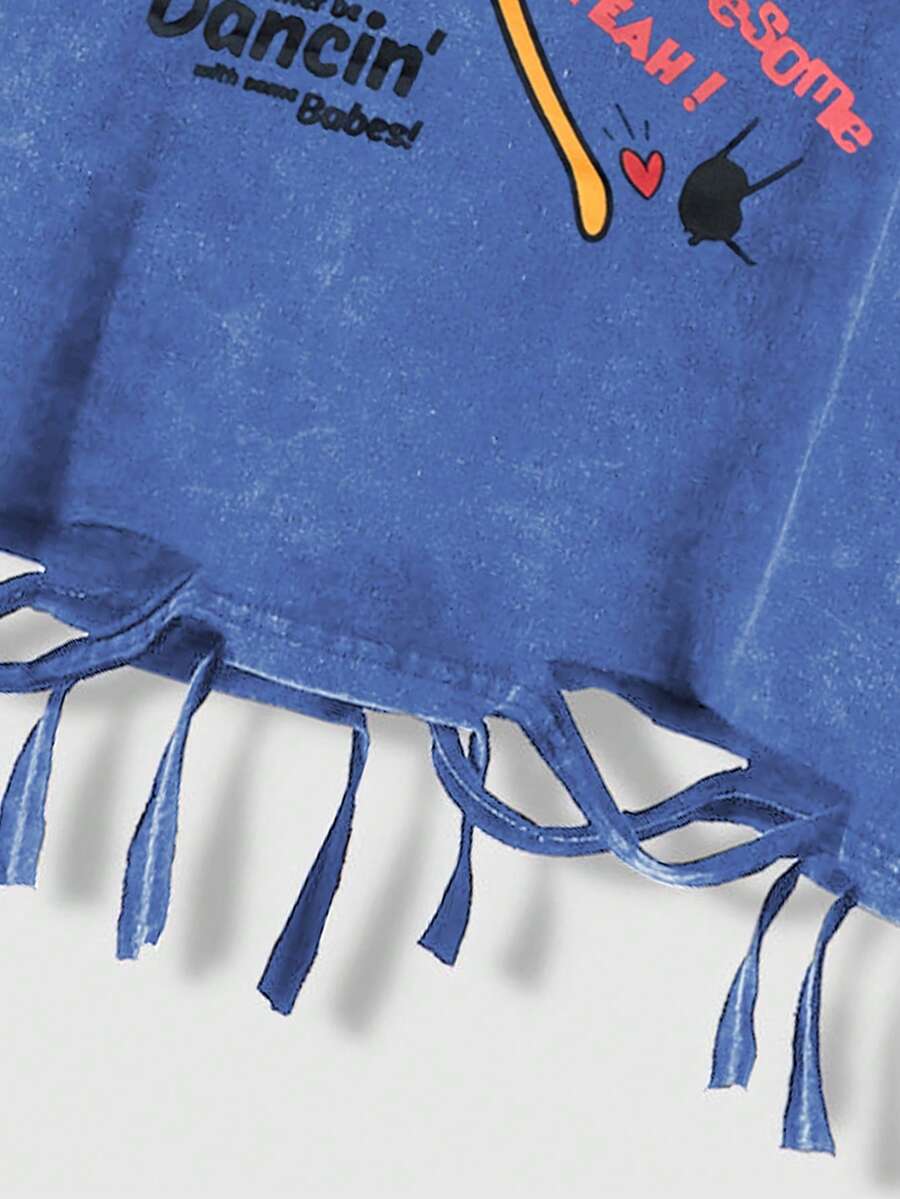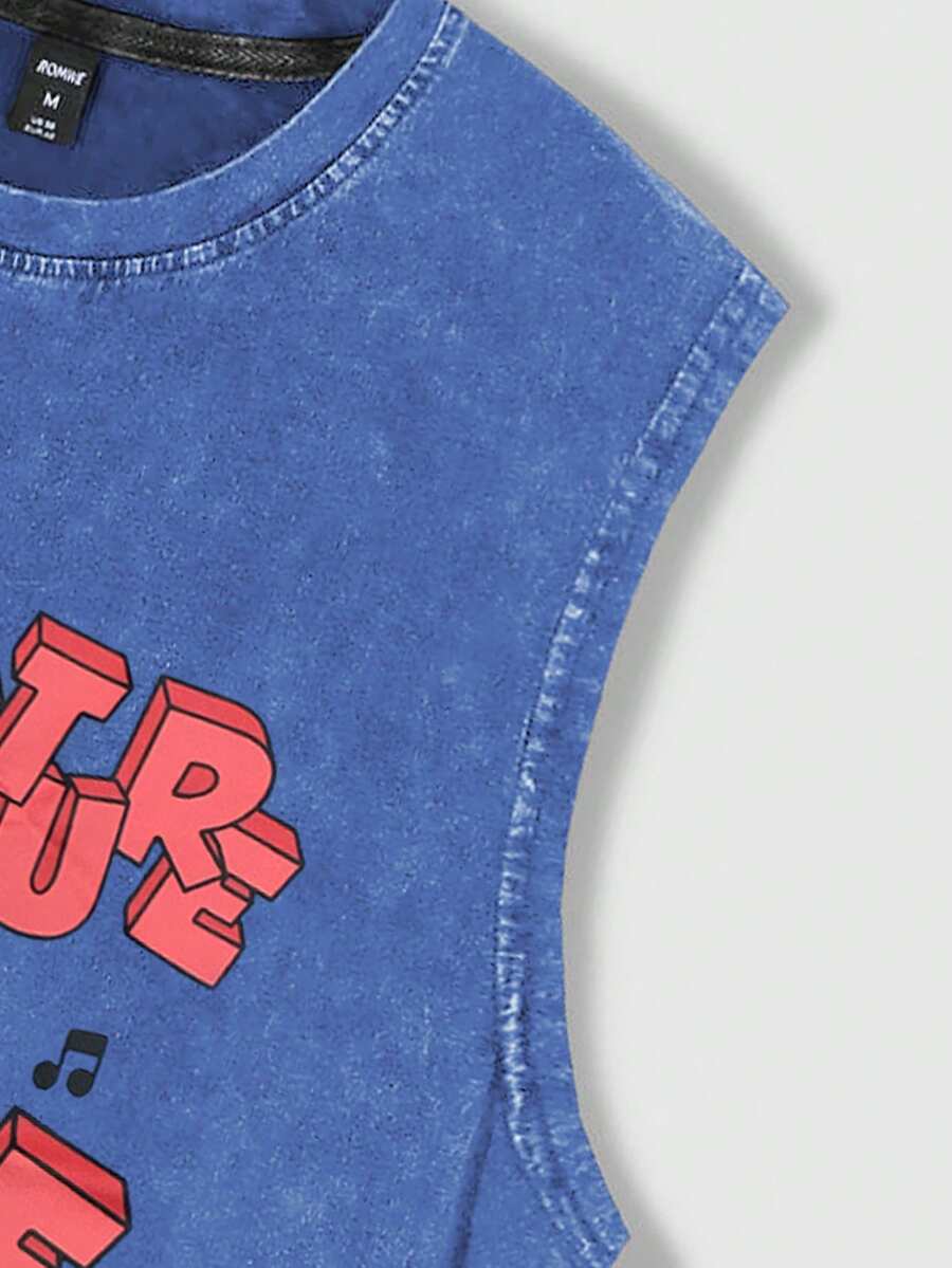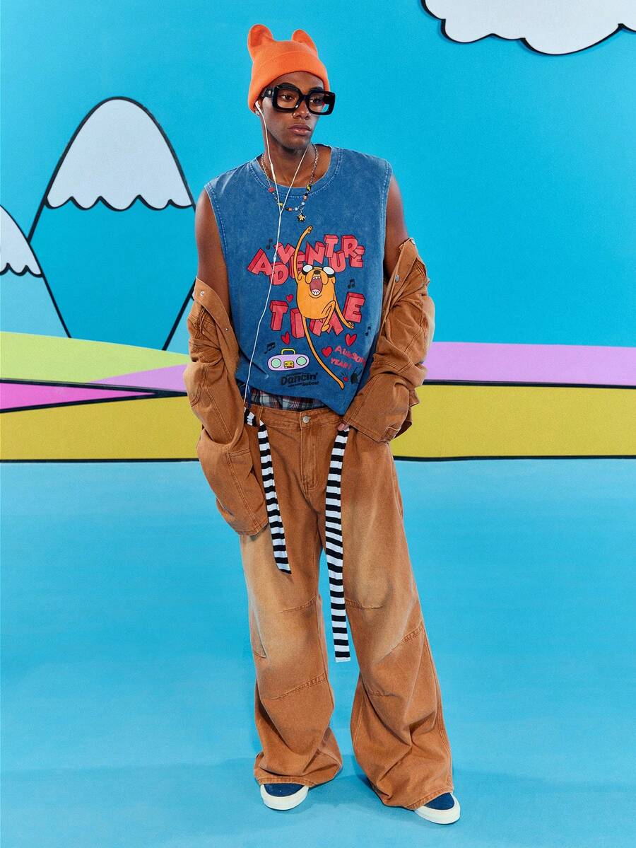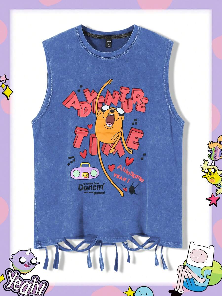 Adventure Time X ROMWE Men's Cartoon And Denim-Effect Print Tank Top, Suitable For Everyday Wear In Spring ,Summer