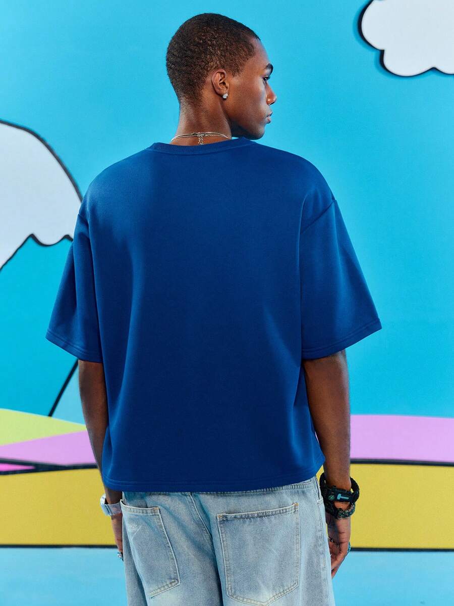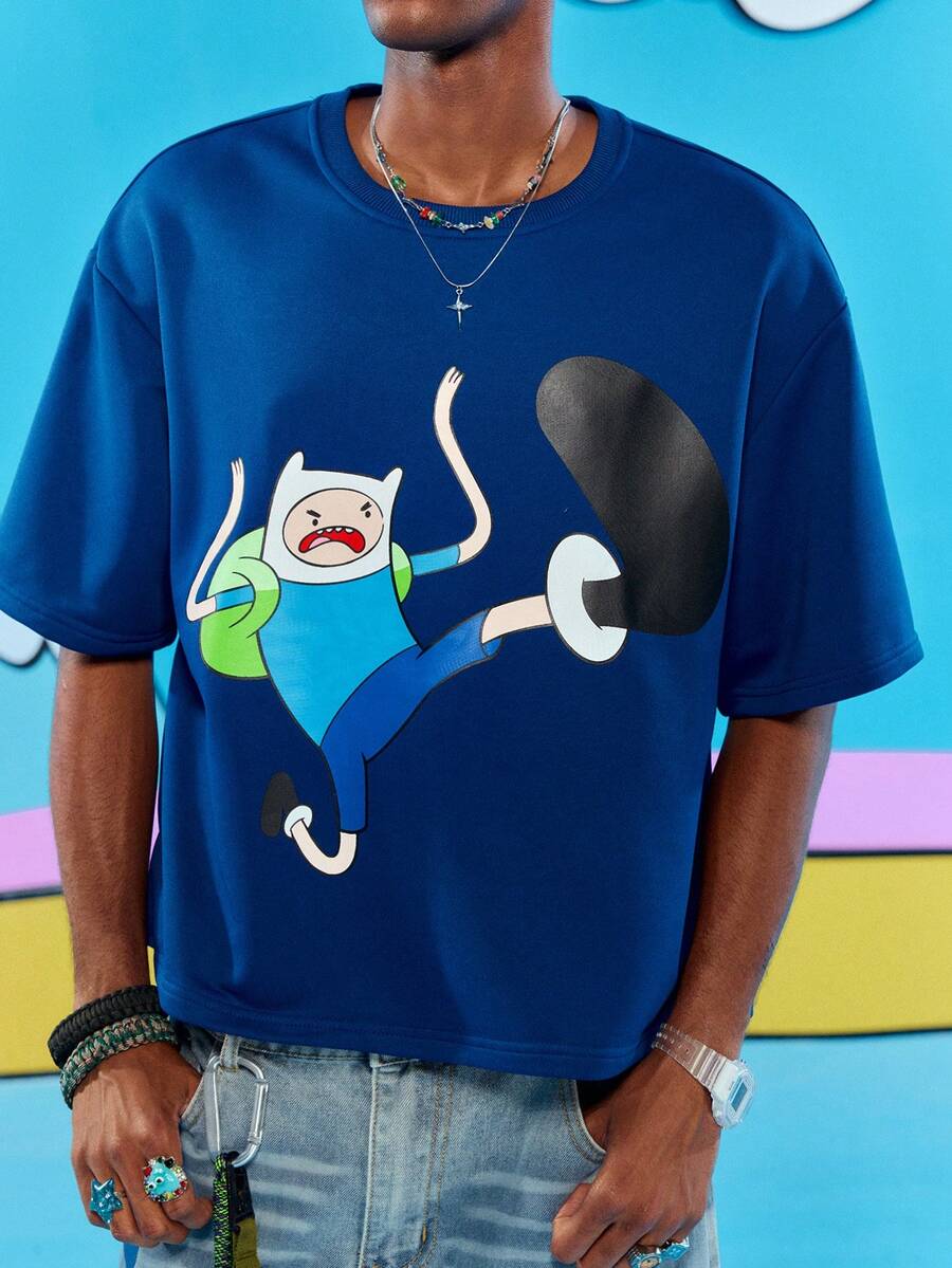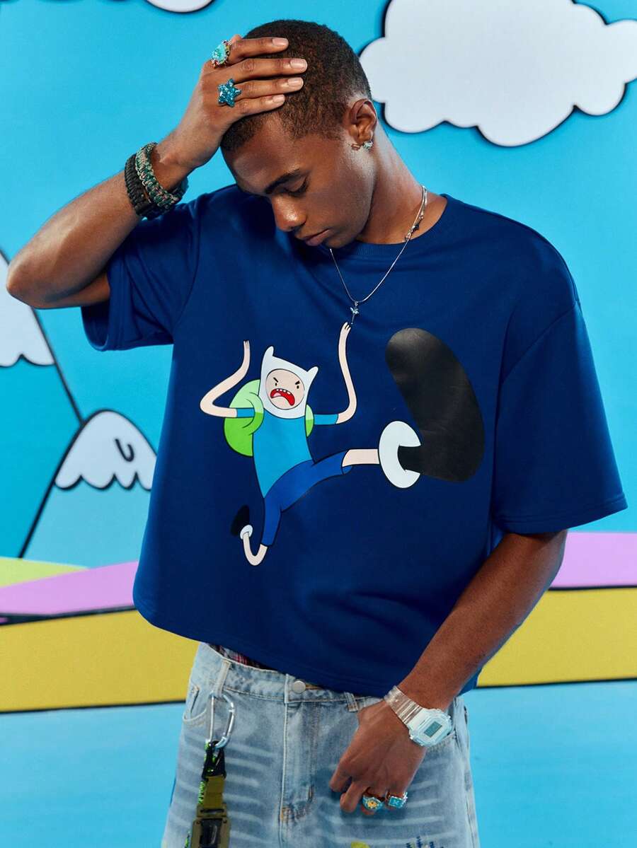Adventure Time X ROMWE Men's Casual Cute Cartoon Graphic Loose Dropped Shoulder T-Shirt