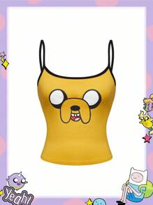 Adventure Time X ROMWE Y2K Style Cute & Quirky Cartoon Pattern Colorblock Fitted Camisole Top