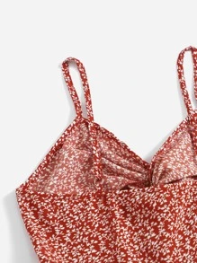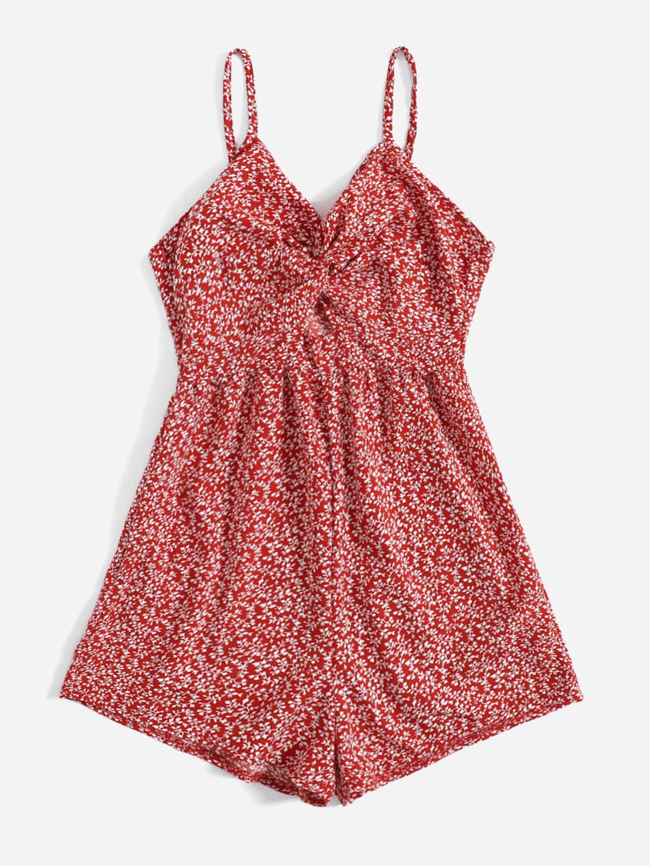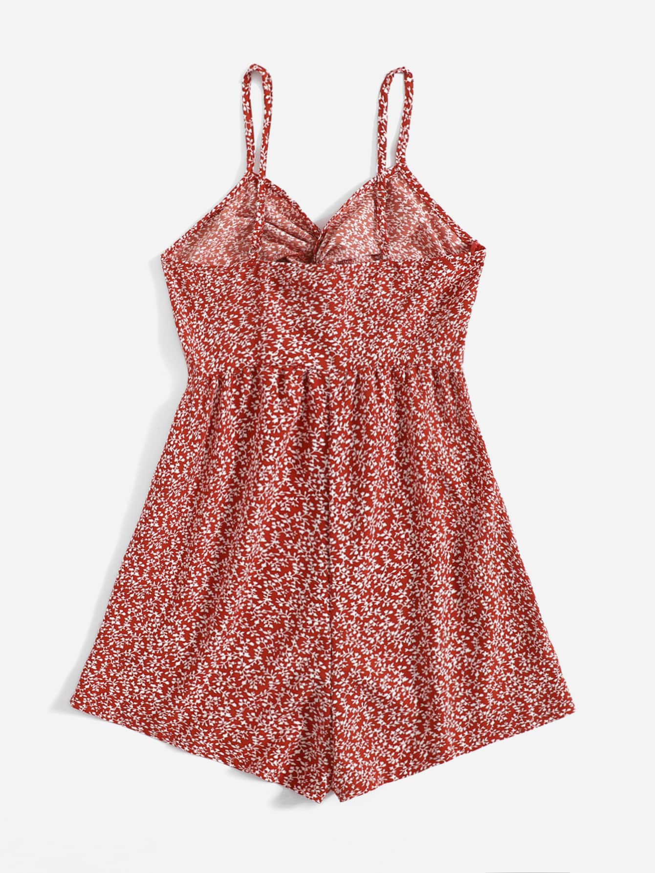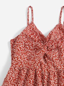 Allover Plants Print Twist Cami Romper
