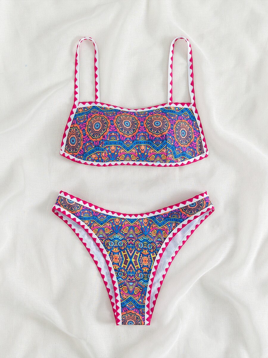 Allover Print Whip Stitch Summer Beach Bikini Set