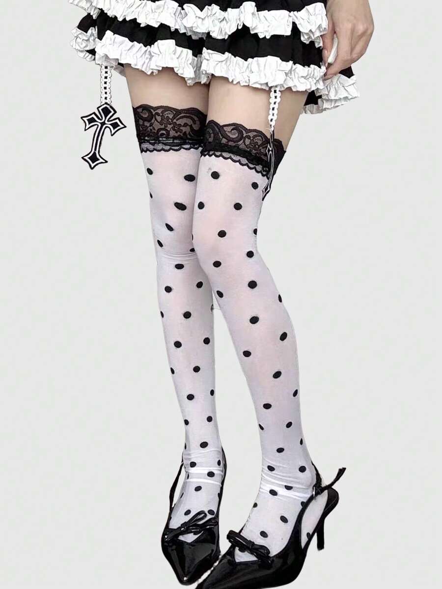 Anime 1 Pair Of Sexy Style Polka Dot Pattern Knee Socks, Y2K Lace Lace High Tube Socks, Ultra-Thin Elastic Transparent Stockings